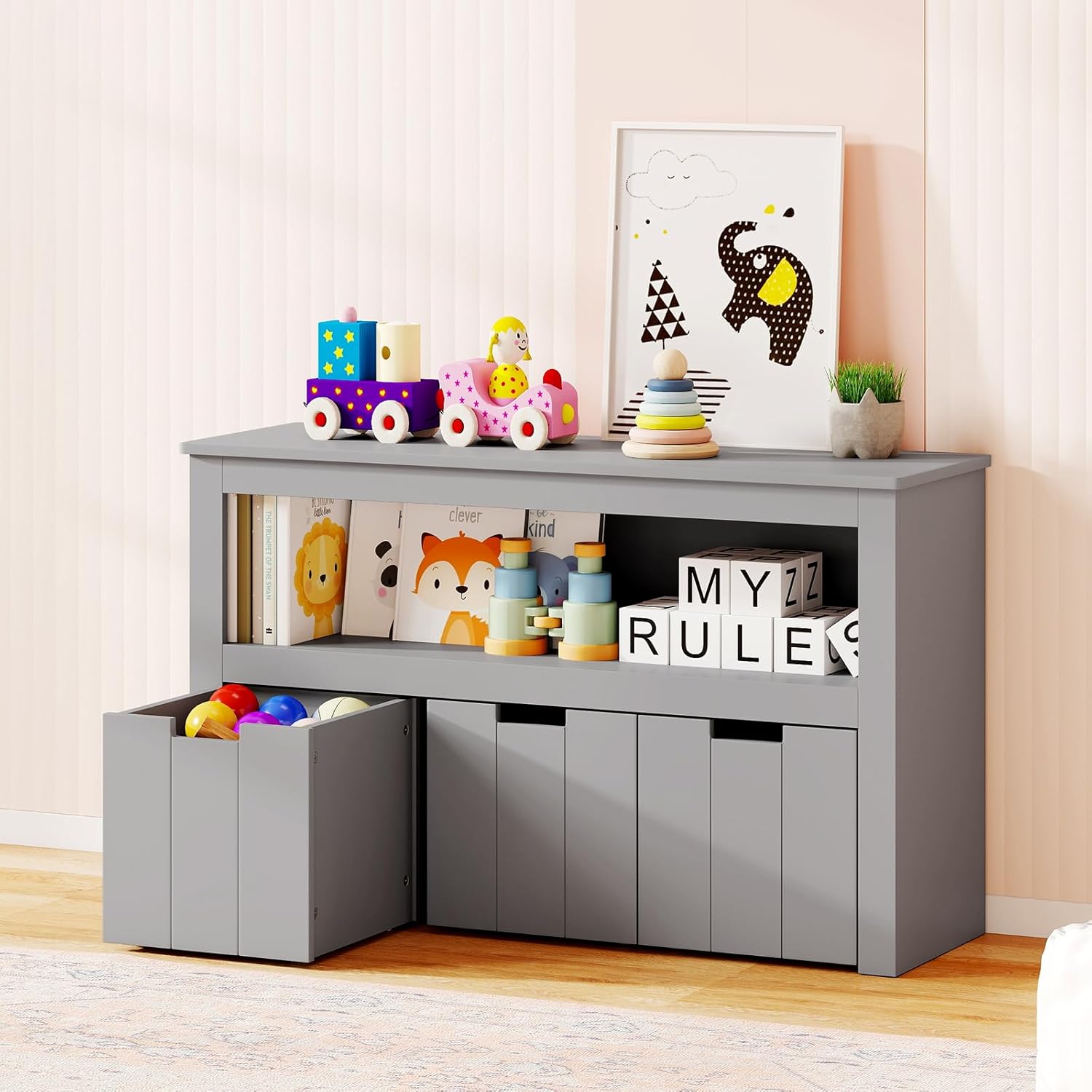 This kids toy storage cabinet makes tidying up both easy and stylish!