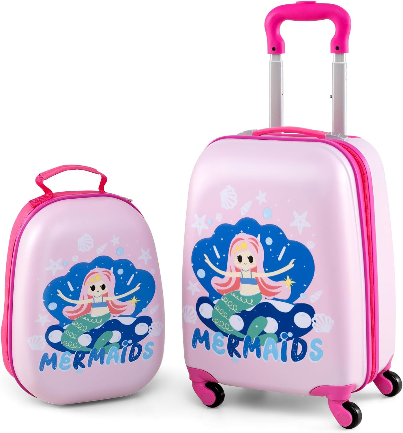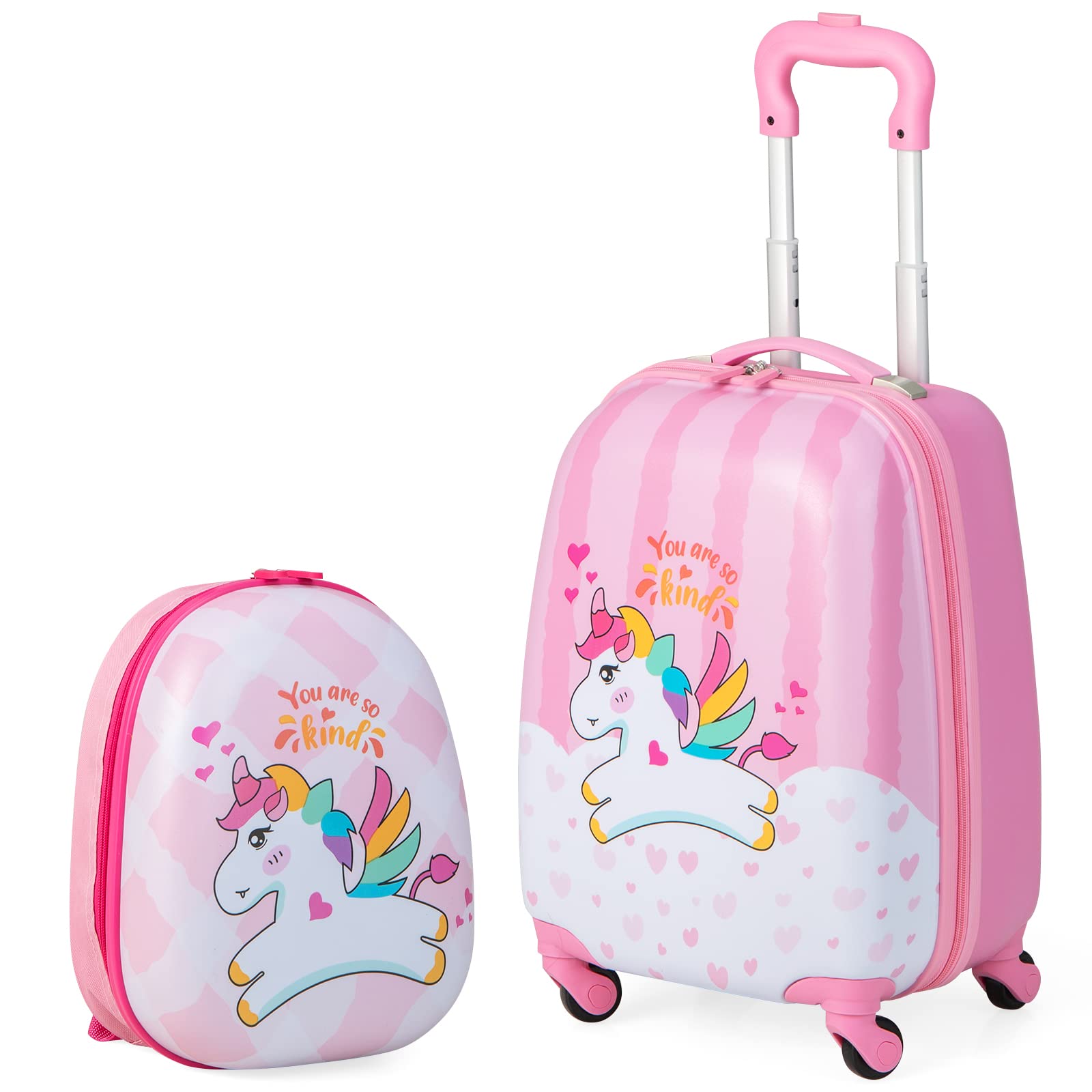 Ideal Gift for Your Kids: With the luggage size of 12" x 8.5" x 18" - 29" (L x W x H) and backpack size of 9.5" x 5" x 13" (L x W x H), this 2-piece luggage set is an ideal choice for kids when they want to travel or go to school. Moreover, the bright color and cute patterns will definitely attract kids attention at first sight. So it is a perfect gift for your kids at Christmas, on Thanksgiving and birthday, and so on.