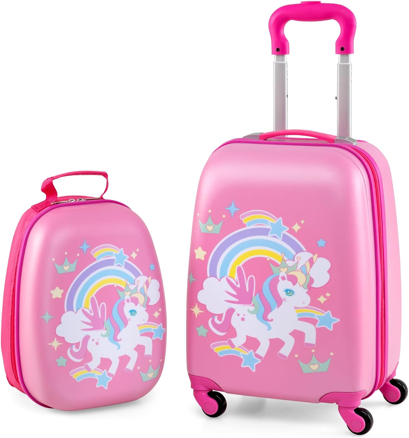 Sufficient Storage Space: The 16" suitcase and 12" backpack set provides ample space for kids to place clothes, books, toys and other personal items. There are inner pockets in the luggage set to facilitate storage and classification of travel essentials. Two-way zippered design makes it easier to open and close the luggage.