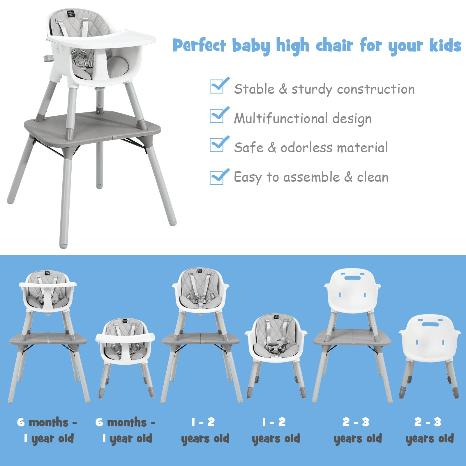 5-in-1 Convertible Design: With the various needs of the baby's growth and change, we have specially designed a multifunctional high chair, which can be easily converted into a high chair, toddler booster seat with guardrails, kids table and chair, infant floor seat, or an ordinary stool. The 5-in-1 design meets the diverse needs of babies at every stage of their growth.