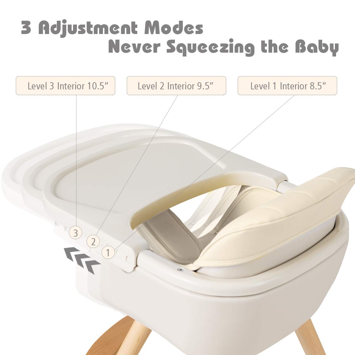 • 3-in-1 Convertible High Chair: By simply adjusting the legs and tray, this modern high chair can be converted into a baby feeding chair, a toddler seat with a guardrail, or an ordinary stool chair to meet the different growth needs of children from six months to three years old.
