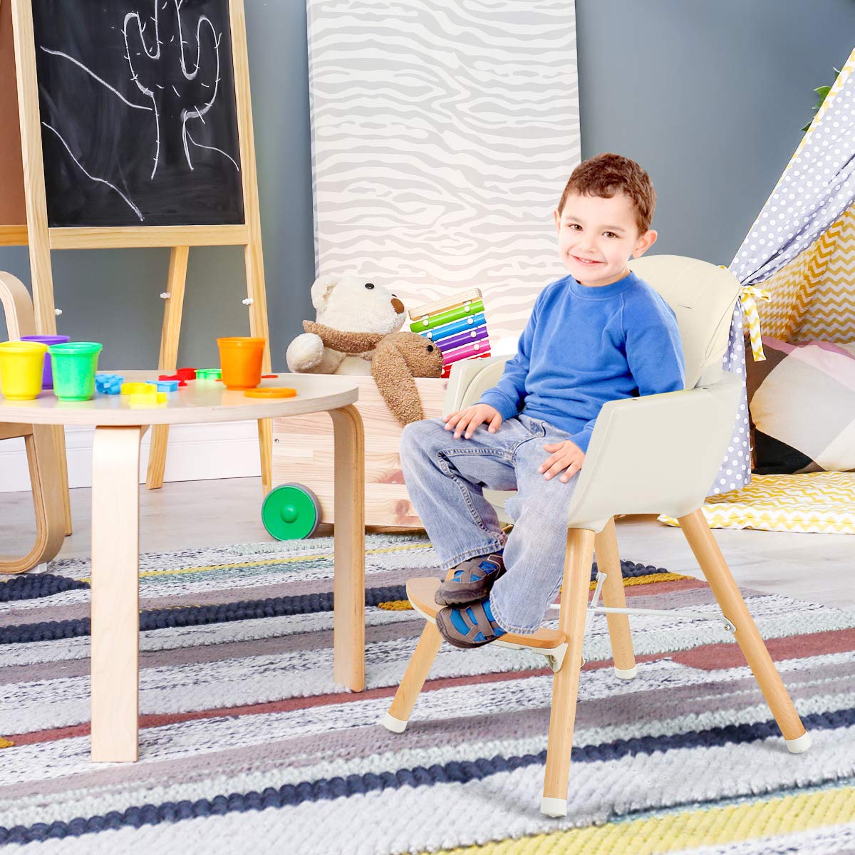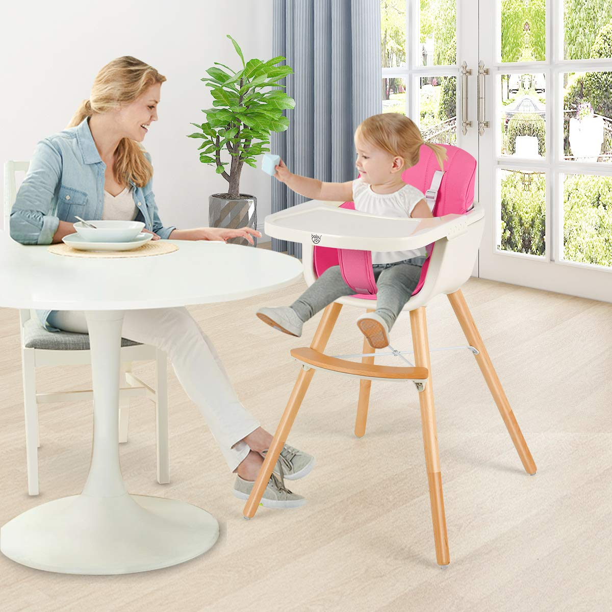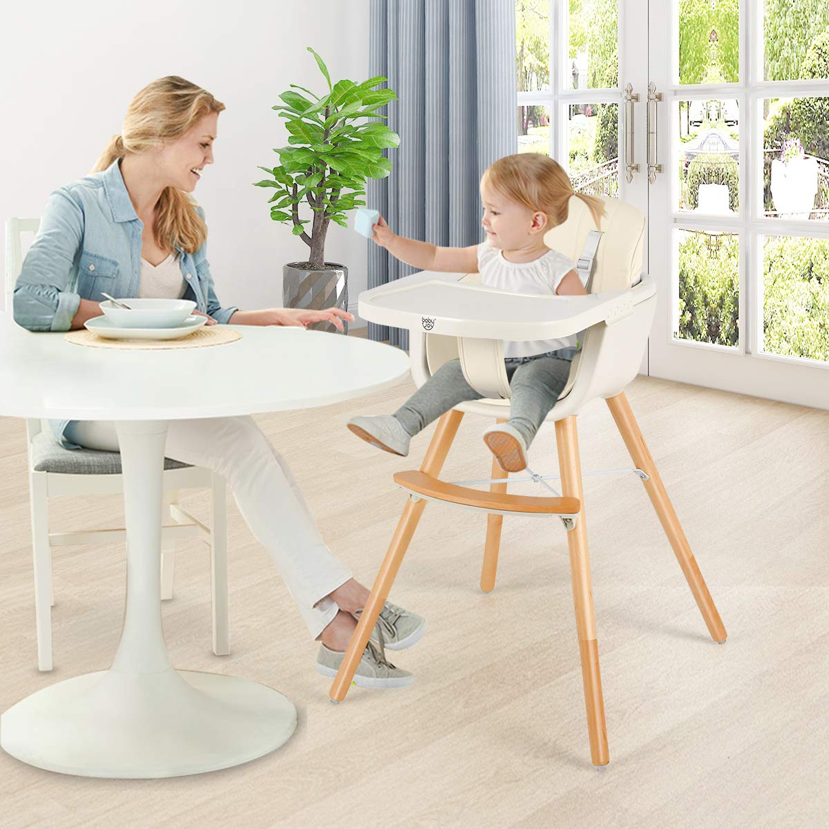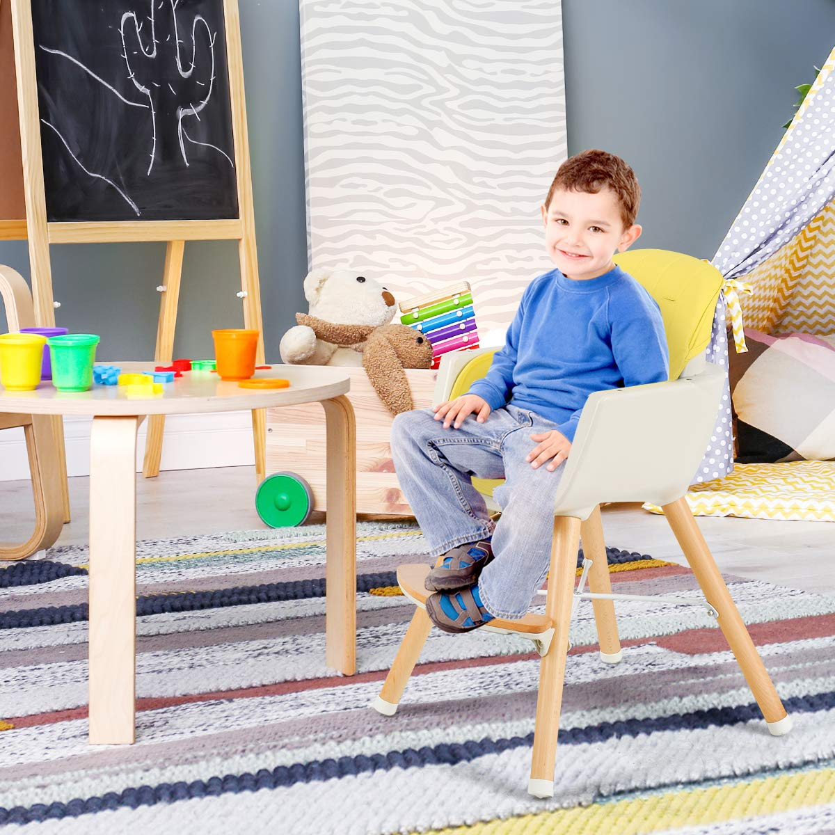 BABY JOY Convertible Baby High Chair, 3 in 1 Wooden Highchair/Booster/Chair with Removable Tray
