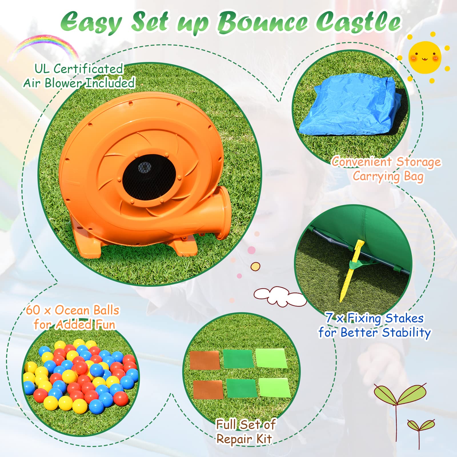 -  Endless Hours of Fun The inflatable slide, splashing pool, and climbing wall are perfectly combined to bring much happiness to your child, they can share great joy with friends and enjoy the pleasure of adventure, chase, and competition, which can effectively arouse enthusiasm to try new things. It's suitable for gardens, parks, backyards, birthday parties, summer BBQs, and more places.