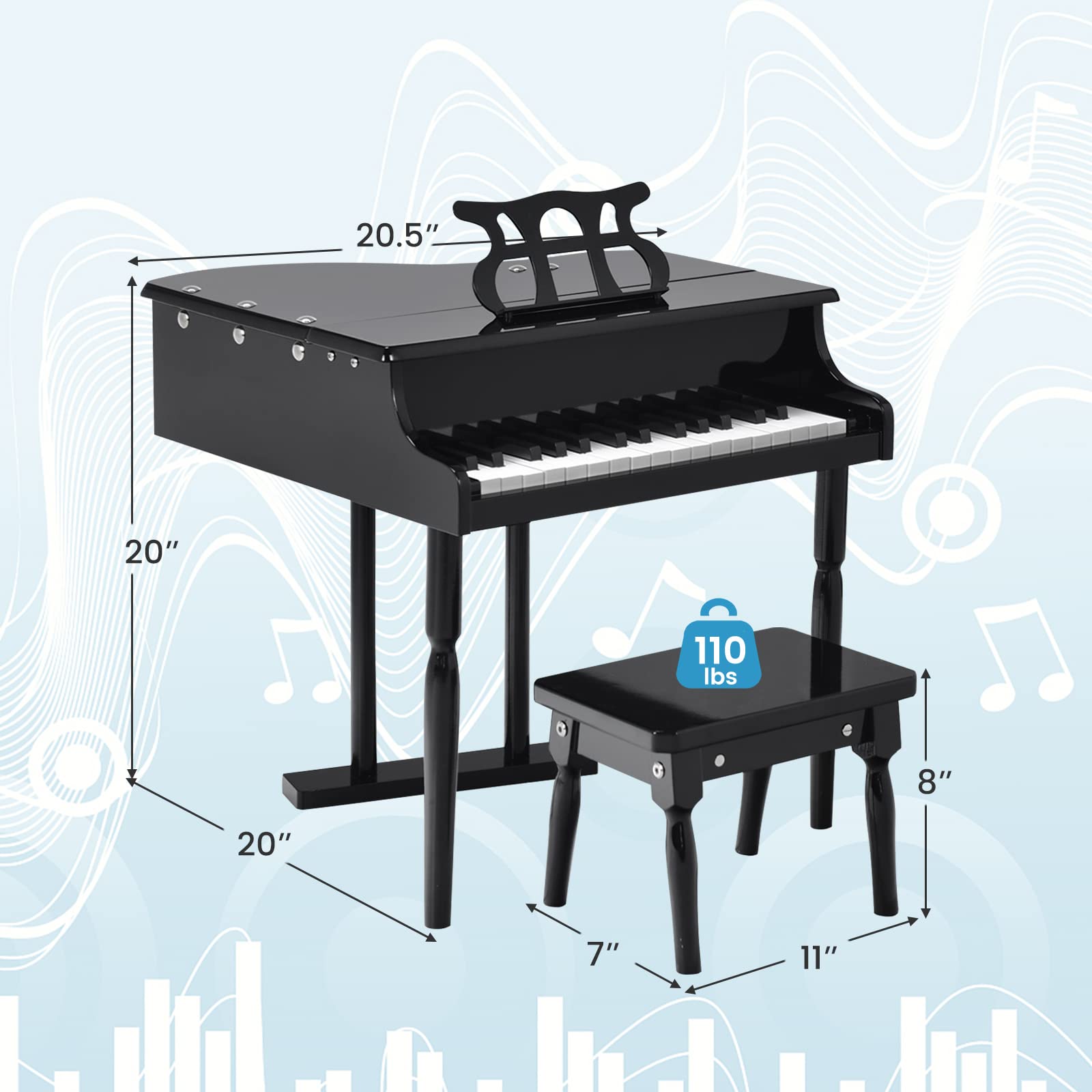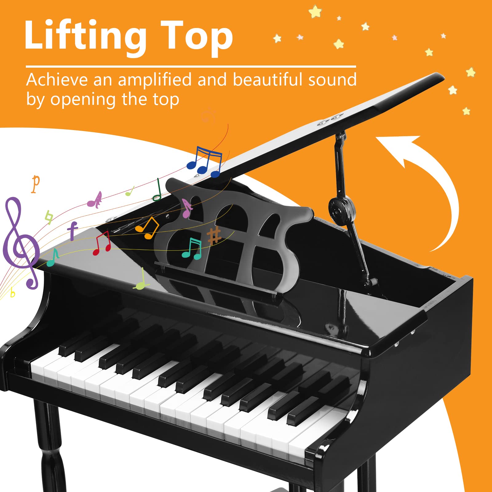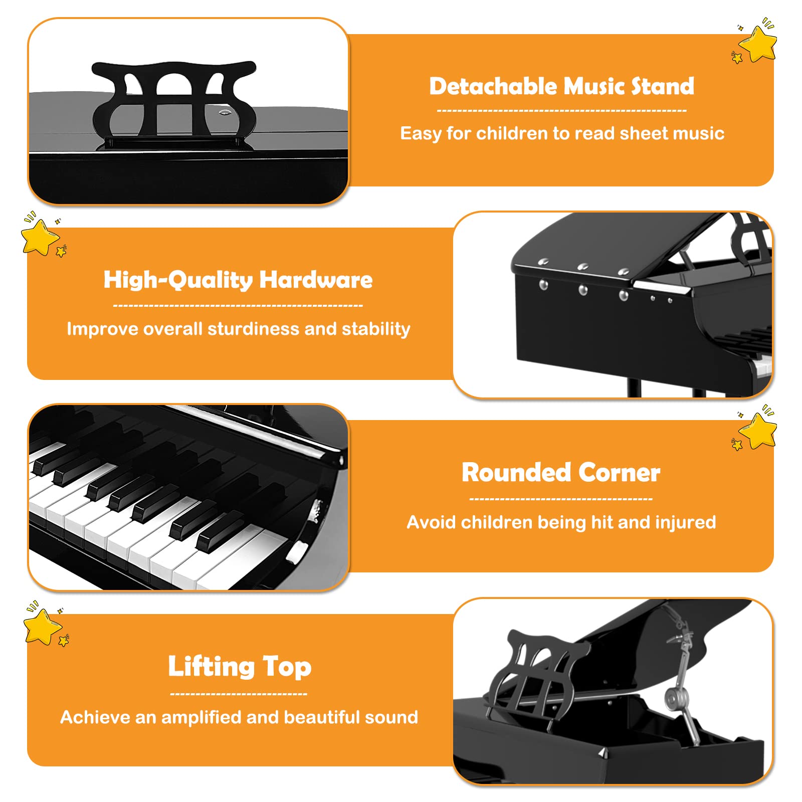 【Perfect Educational Toy】The mini grand piano comes with a comfortable stool for kids to sit, thus they can play with more coziness. Also, designed with a functional music stand, kids can learn to play the piano with higher efficiency.