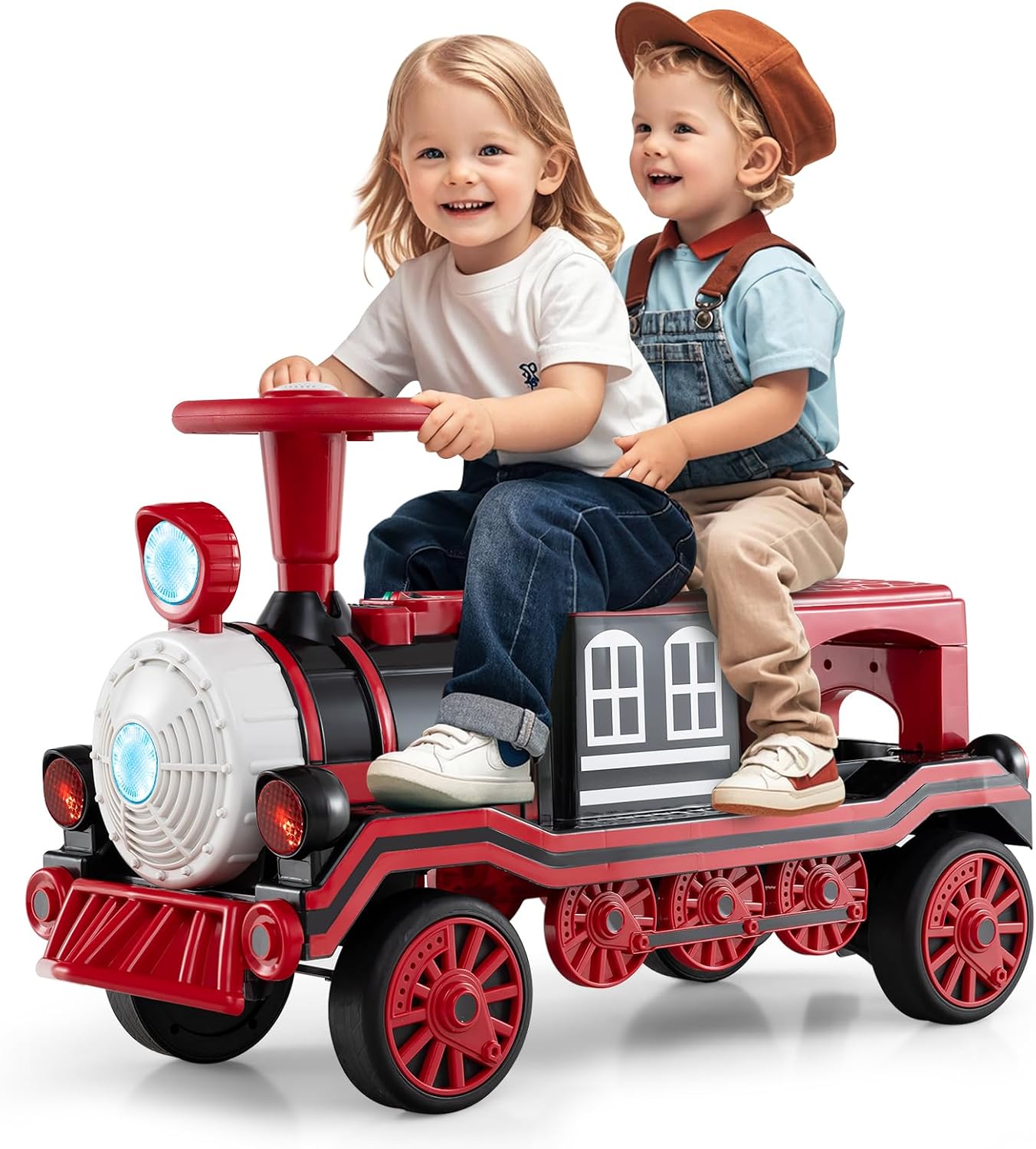 Boasting enough room for 2 kids to comfortably share the ride, this 12V electric train comes with a removable chair, allowing for flexibility in seating arrangements. Two 30W motors and a 12V battery provide children with extended playtime. Safety is emphasized with anti-skid wheels, anti-rollover devices, and a slow start function. The ride on train is easily operated with buttons on the steering wheel and control panel, while also offering built-in music and a USB port for additional entertainment options. Ideal for children aged 3-8 years old, this 2-seater train toy makes for an exciting and reliable gift choice for birthdays, Christmas, or other special occasions.