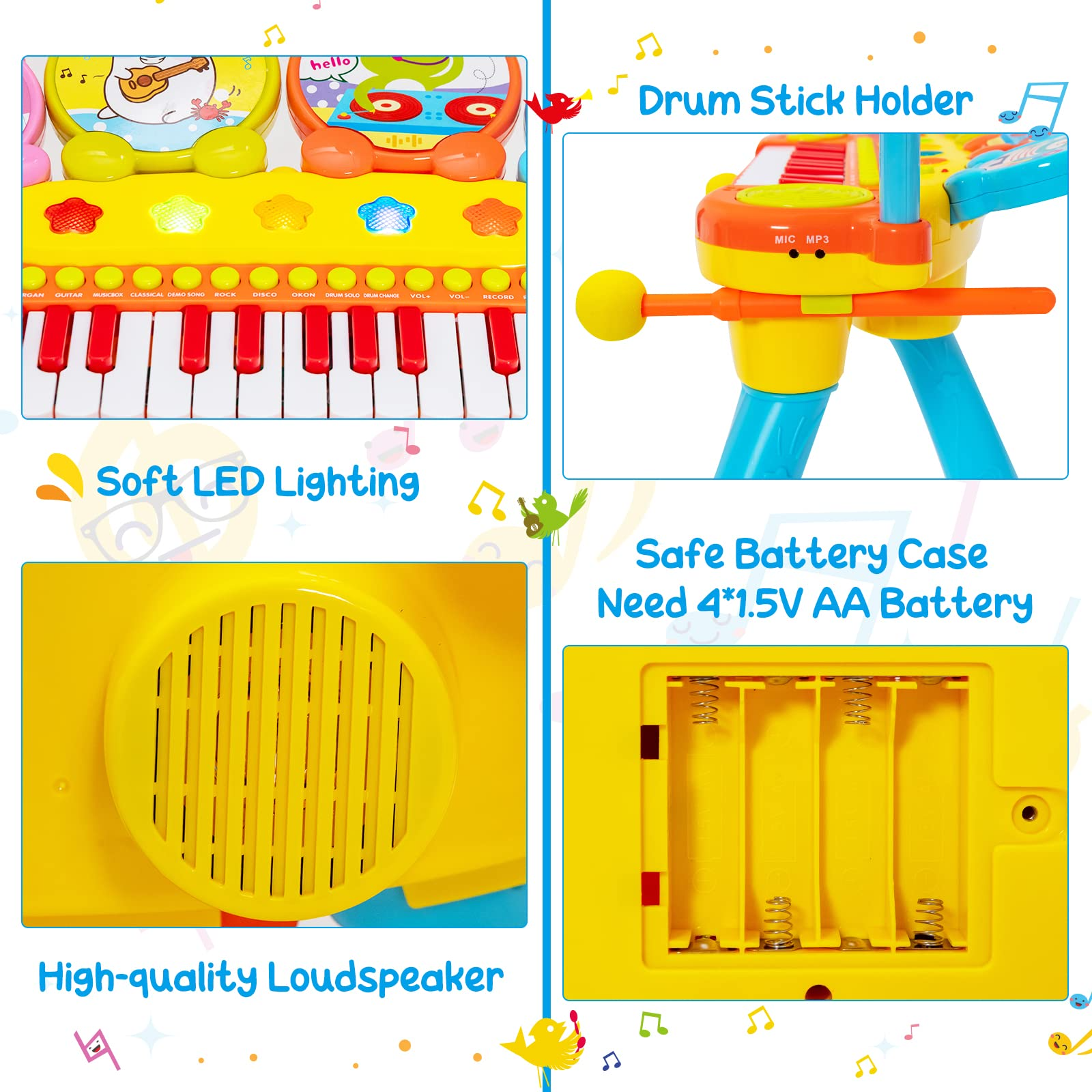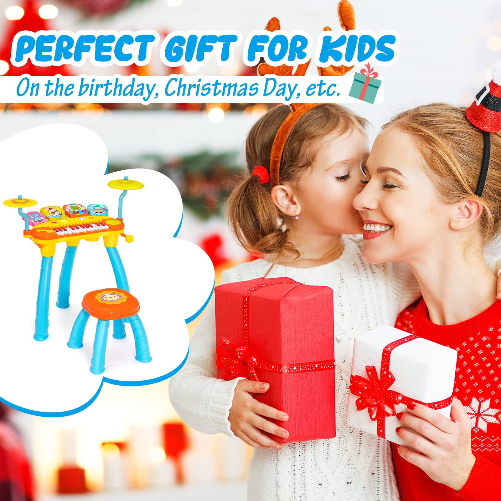 Costzon 24-Key Piano Keyboard DJ Drum Combination, Kids Drum & Electric Keyboard Set with Stool, Microphone