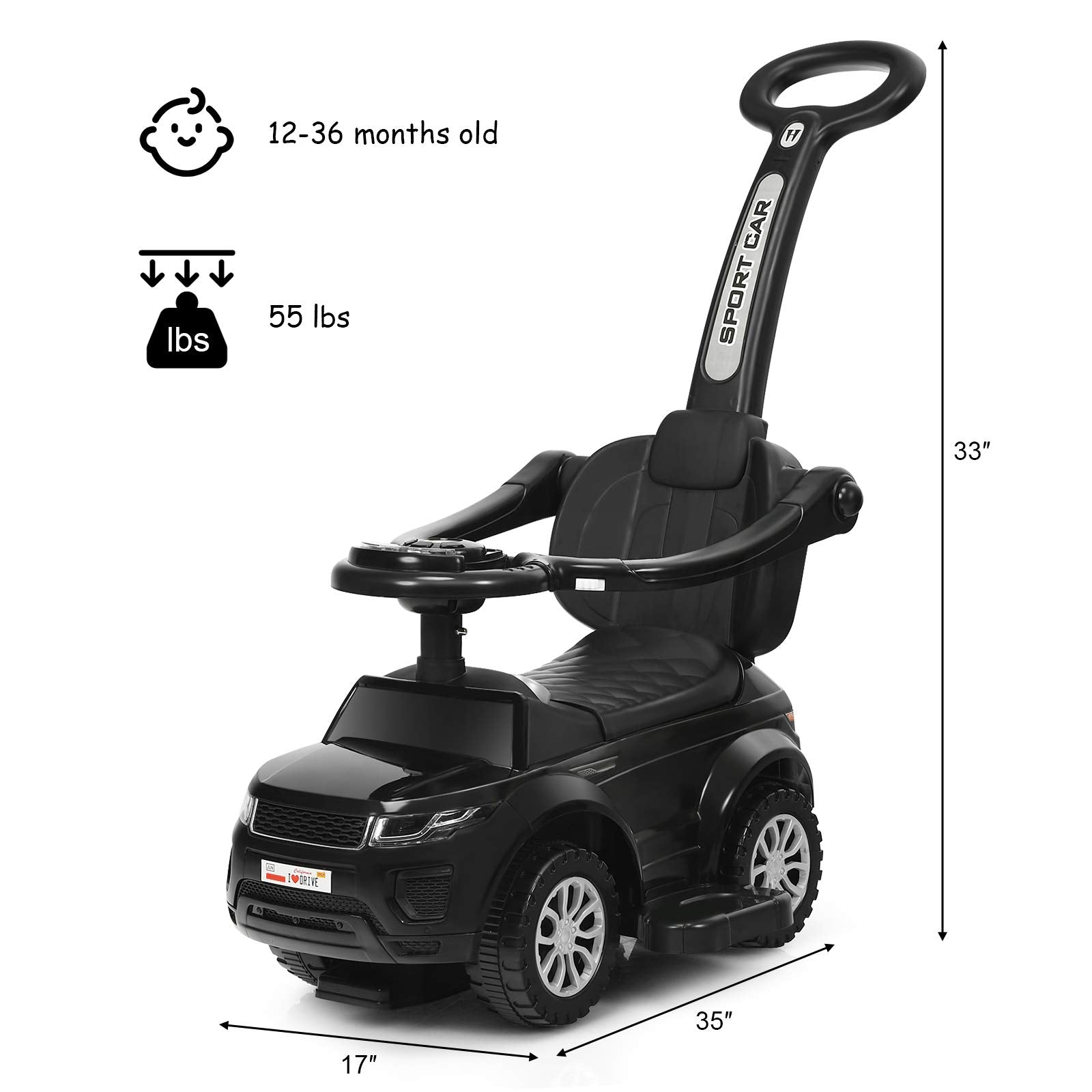 Costzon 3 in 1 Ride on Push Car Stroller Sliding Walking Car with Horn