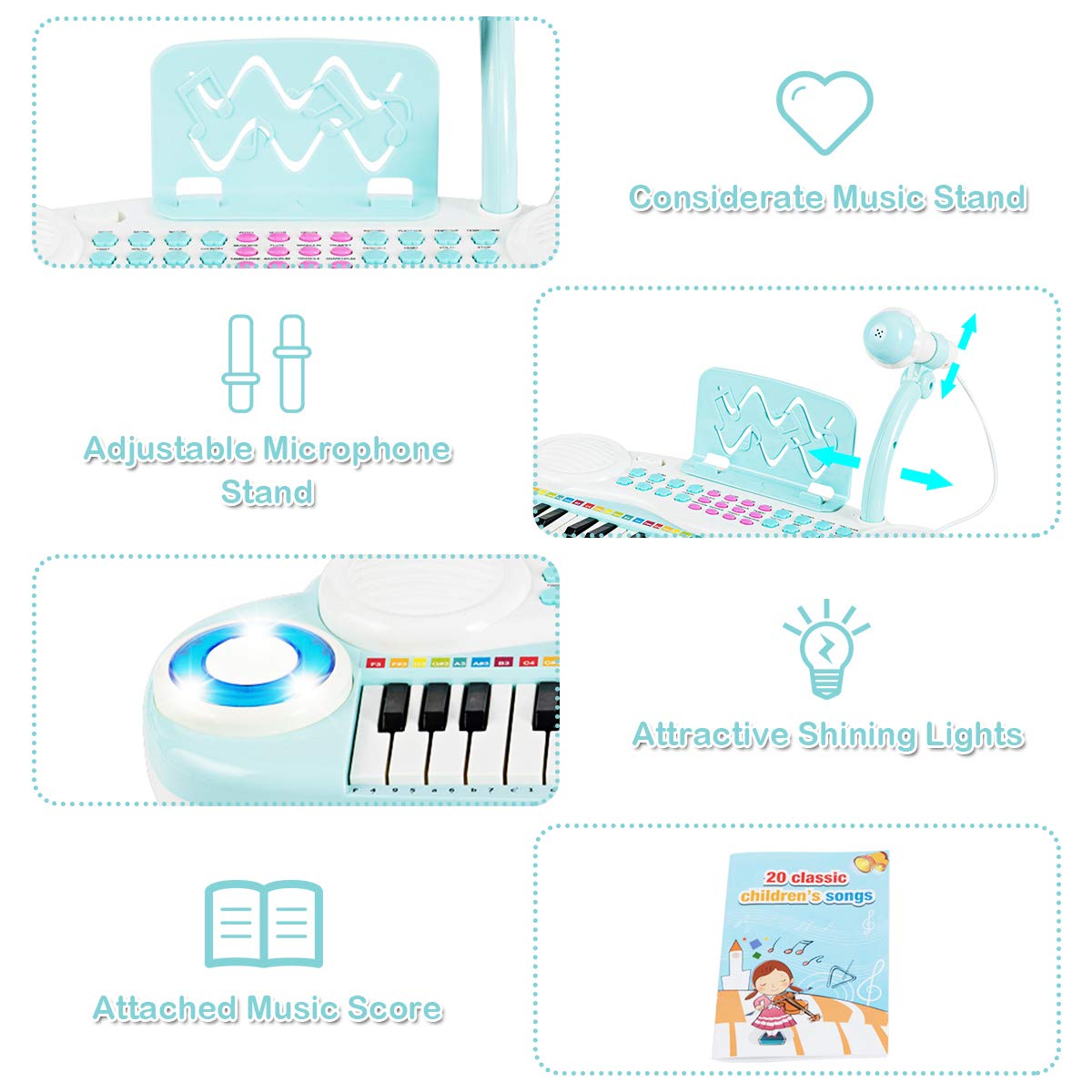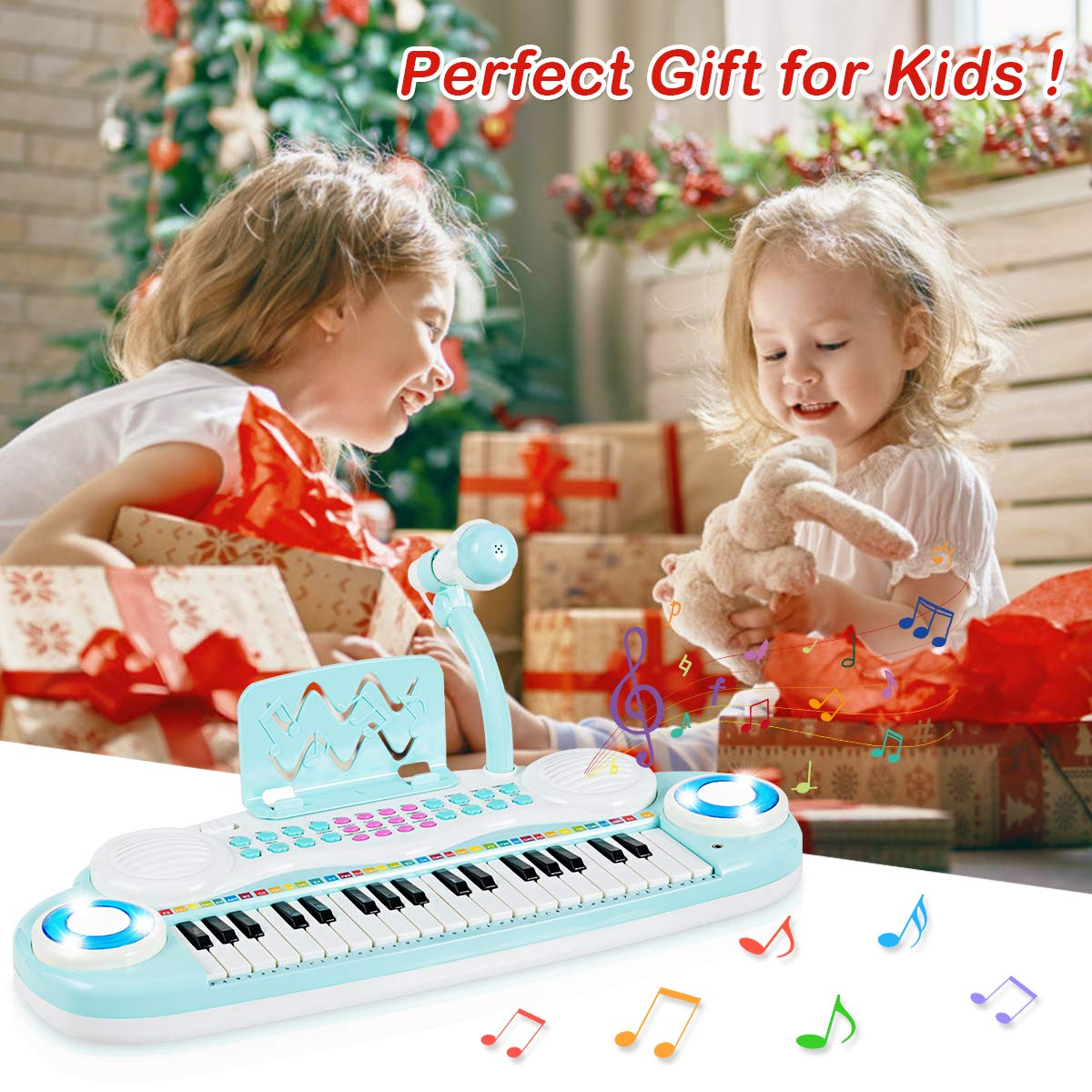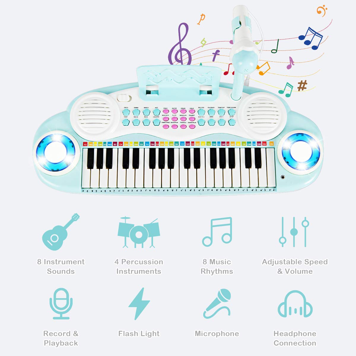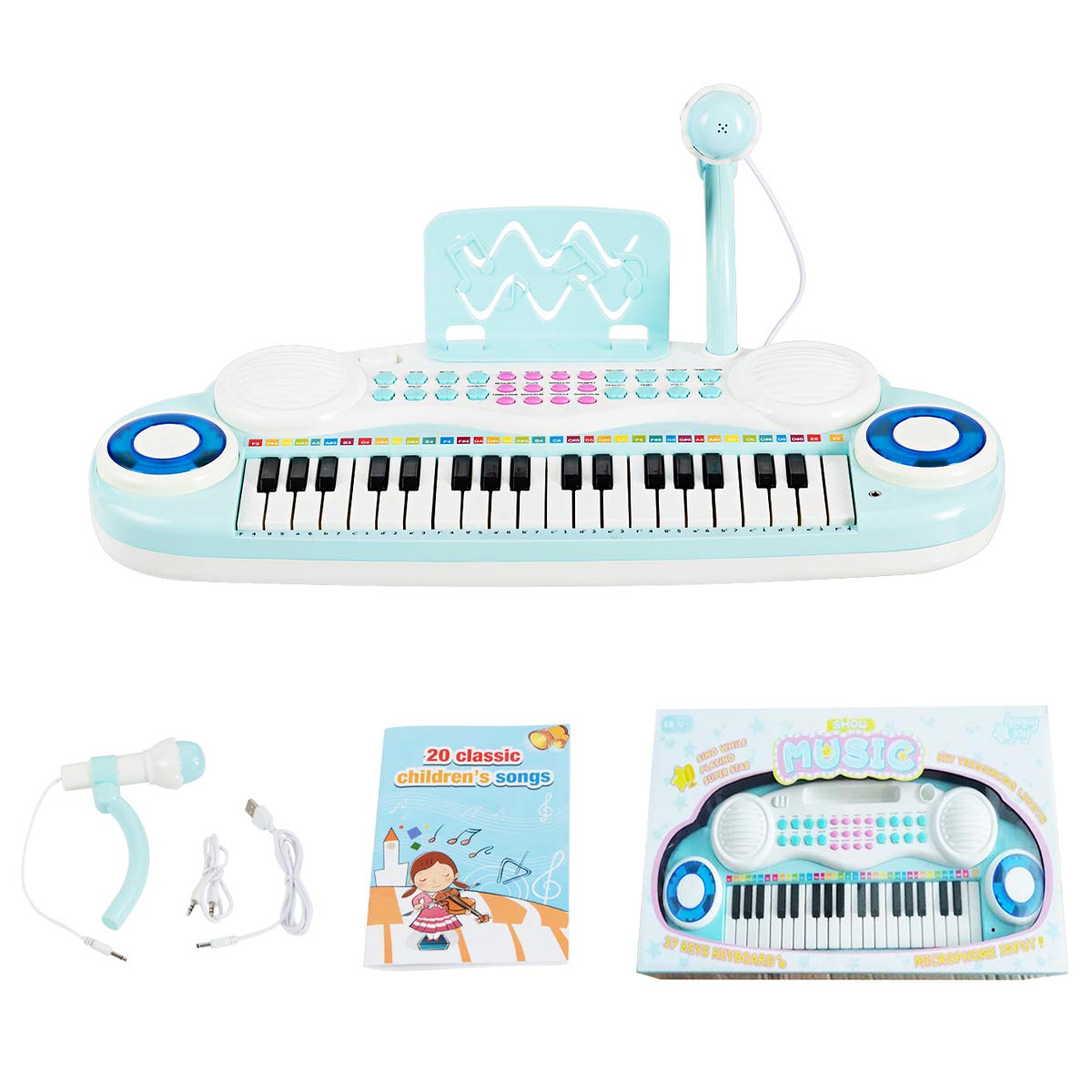 Costzon 37 Keys Electronic Keyboard Piano for Kids, Portable Musical Keyboard with Rhythm Light