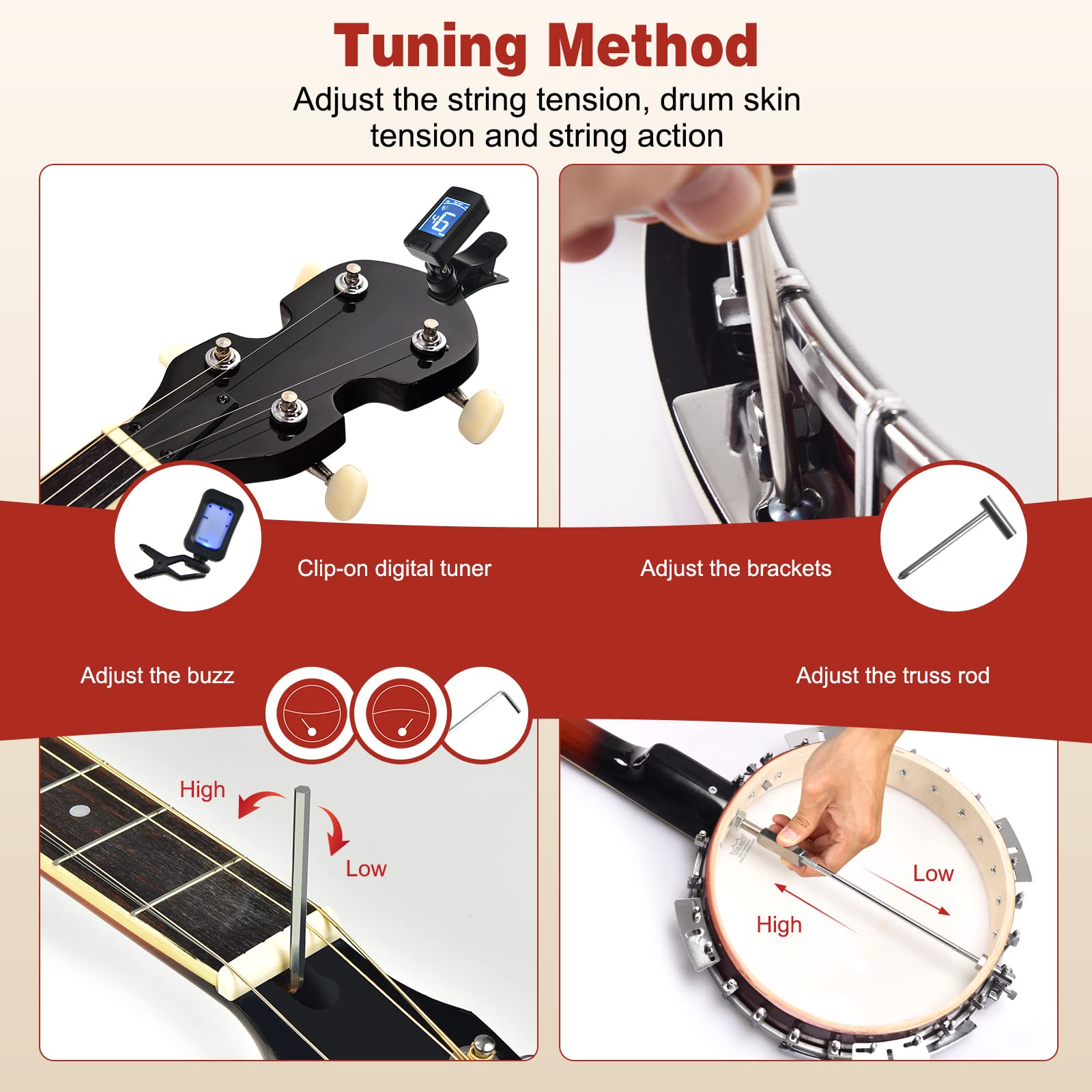 Costzon 5 String Banjo 24 Bracket with Geared 5th Tuner and Mid range Closed Handle