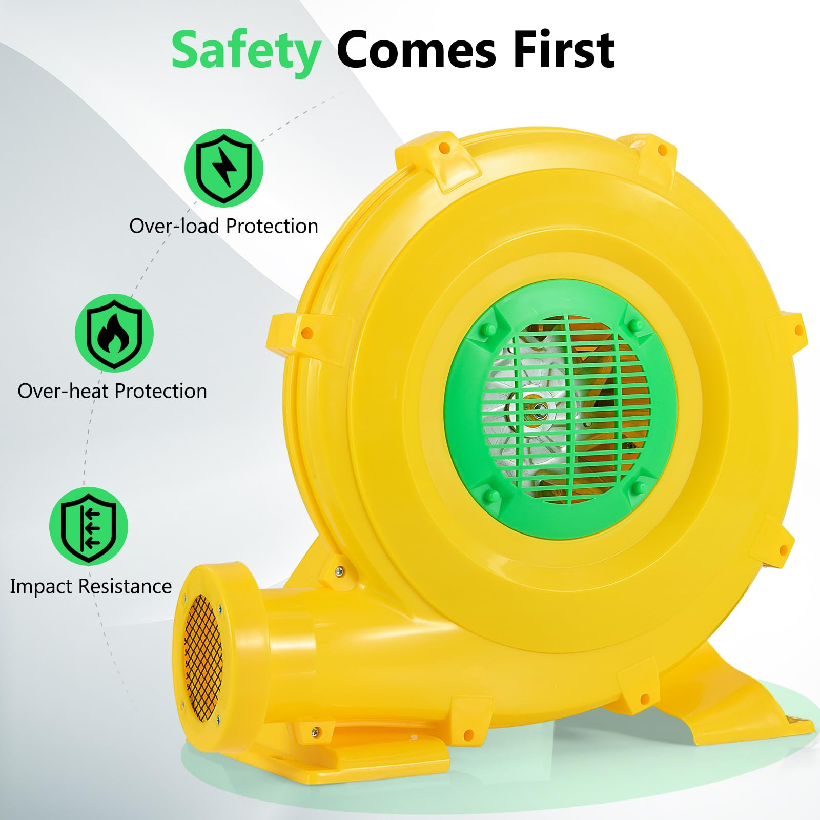 Discover the magic of our ultra-powerful, 780W bounce house blower! Imagine seeing your children’s faces light up as their inflatable playground springs to life in mere minutes, thanks to the turbo-charged 1300 CFM airflow and robust 1880 Pa wind pressure. This is your weekend win-maker whether you’re hosting a grand school fair or a backyard bash. Plus, with built-in safety features, you’ll toss those worries to the wind! Lightweight and boasting a super-long 12 ft power cord, this compact powerhouse offers stress-free setup anywhere you choose. Ready, set, inflate—with versatile compatibility, make every event effortlessly epic!