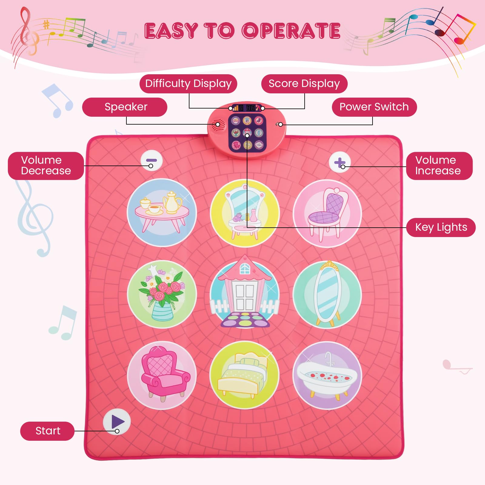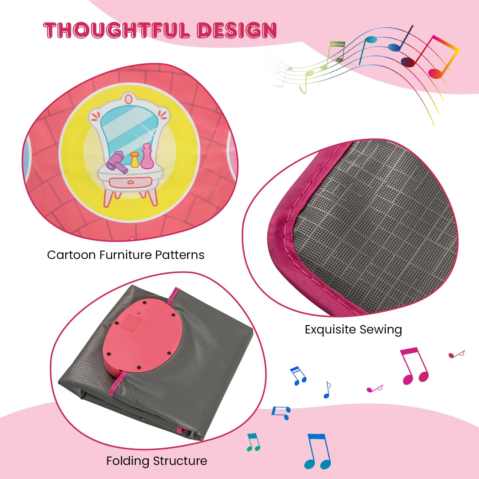 Designed for children aged 3 and up, the dance mat features 5 game levels that challenge and enhance kids’ coordination and rhythm skills. With 9 delightful keyboard sounds and 9 demo songs, your little ones can enjoy varied music. It is great for hand-eye coordination, music sense cultivation, parent-child interaction, and motor skills. The dance pad is easy to operate with the power switch, start key, volume increase, and volume decrease buttons. Kids can also freely set the volume as they like. Your little one can choose the demo mode or play mode. The smooth surface and non-slip bottom ensure a secure and comfy area for kids to dance. It also complies with ASTM/ CPSIA. Its foldable structure and 1.3 lbs light weight ensure space-saving storage and easy carrying. Our dance pad will an ideal gift that will keep kids active and engaged.