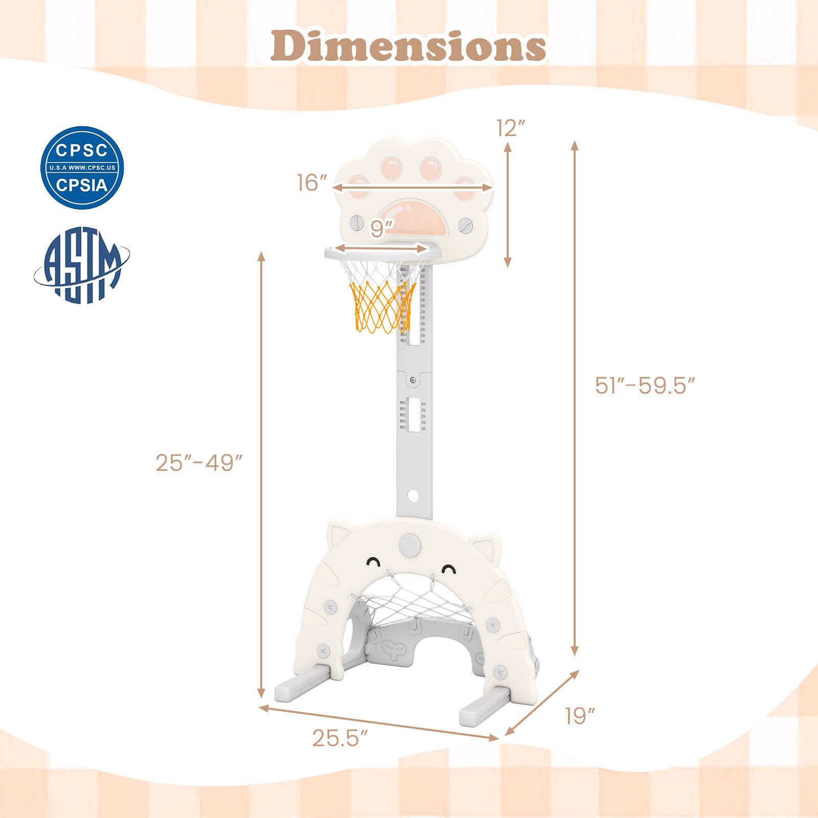 3 in 1 design includes basketball, soccer and golf