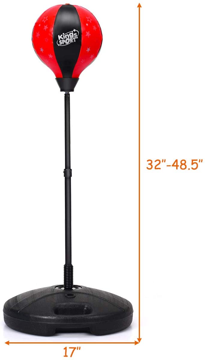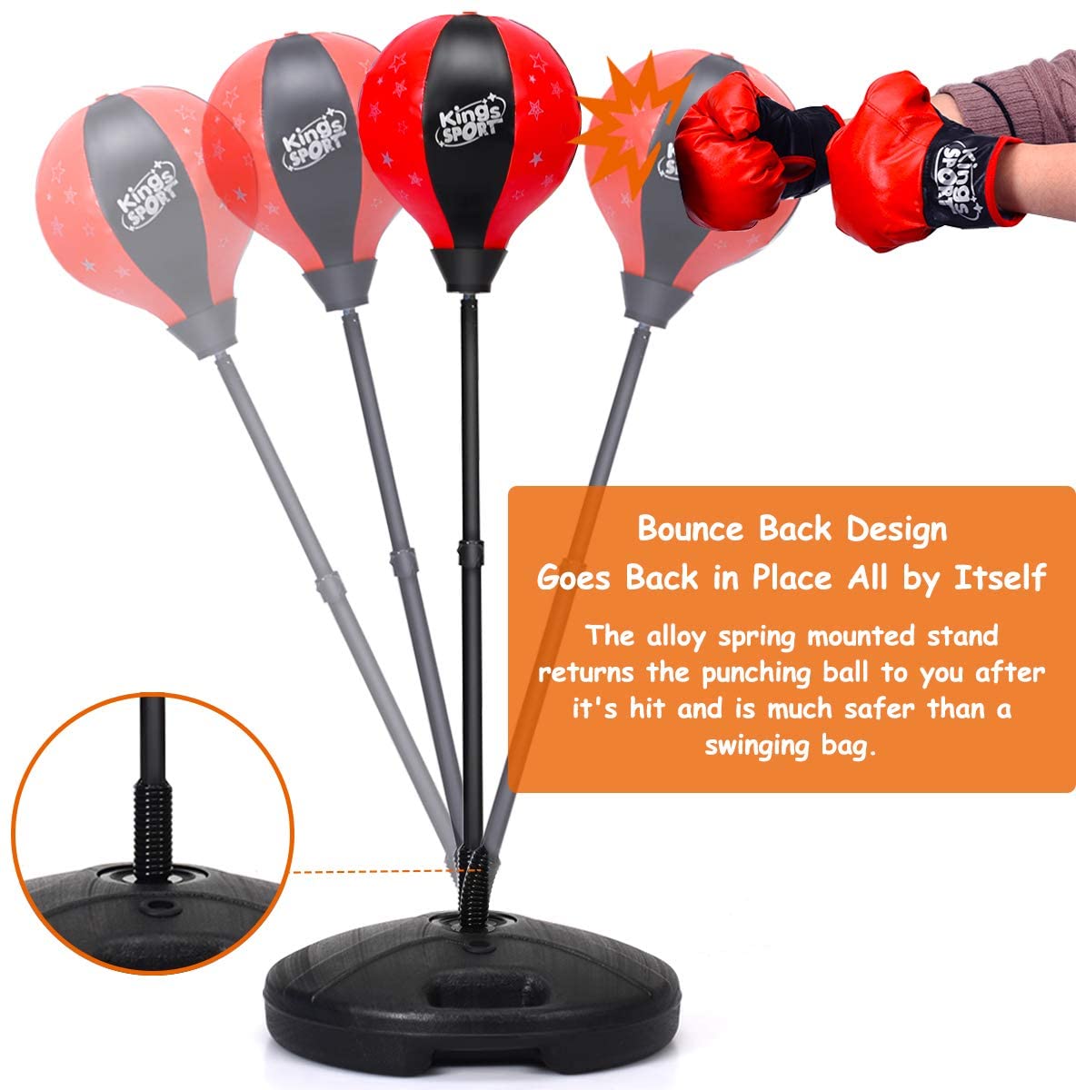 - Adjustable Height of Spring: This kids boxing bag can be easily adjusted from 32" to 48.5" high. This kids boxing set is so convenient to use for a long period of time and it is a great partner to accompany them growing older and stronger. Suitable for 3-10 years old kids.