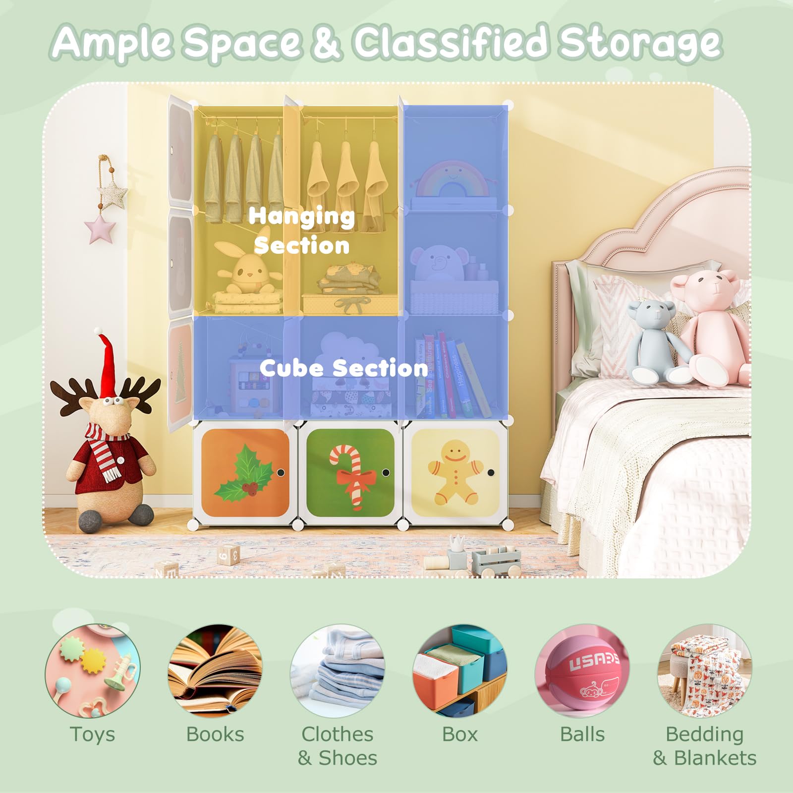 The cube organizer allows you to assemble in different storage requirements, and offers large capacity to bring you a clean and tidy space. Plus, it features cute patterns and has an adorable appearance, and is suitable for many places like bedroom and dressing room. Made of quality materials, the children armoire is durable and smooth, requiring simple maintenance to save you more entertainment time.