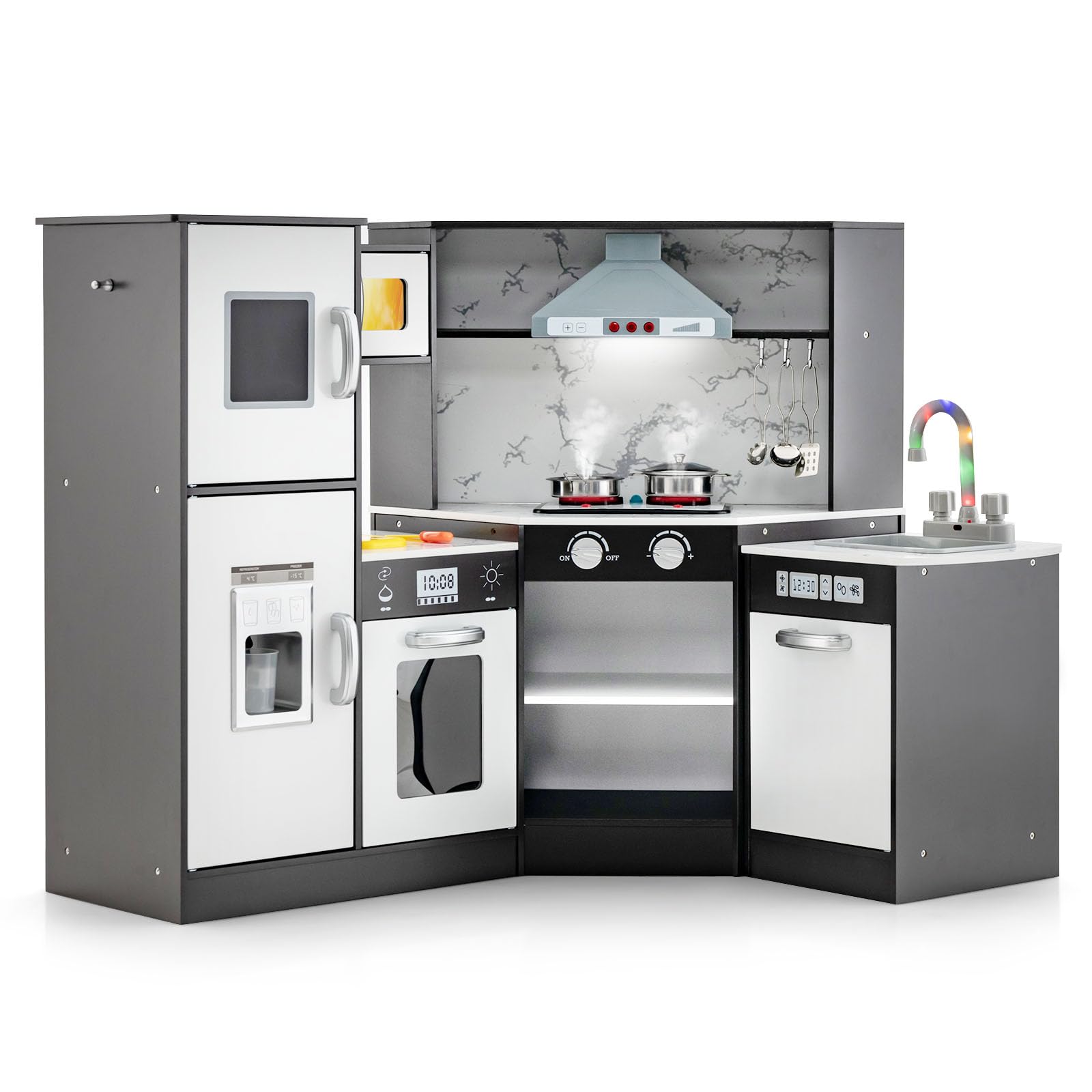 Your little cook will fall in love with this wooden corner kitchen playset!