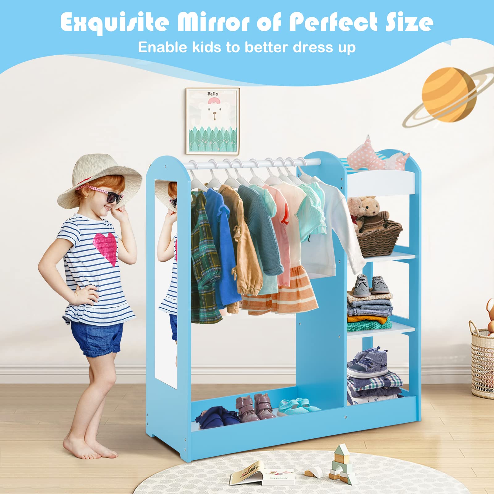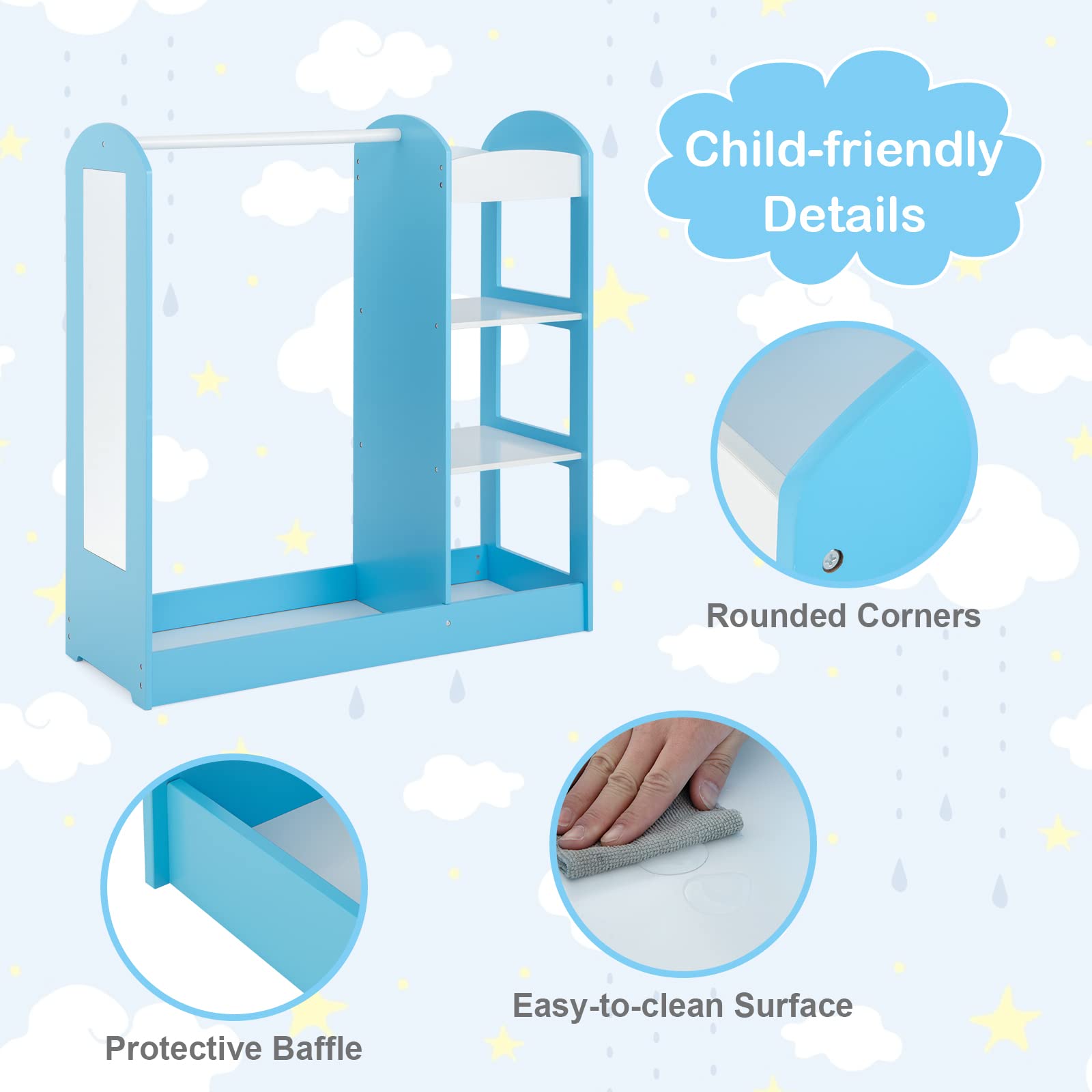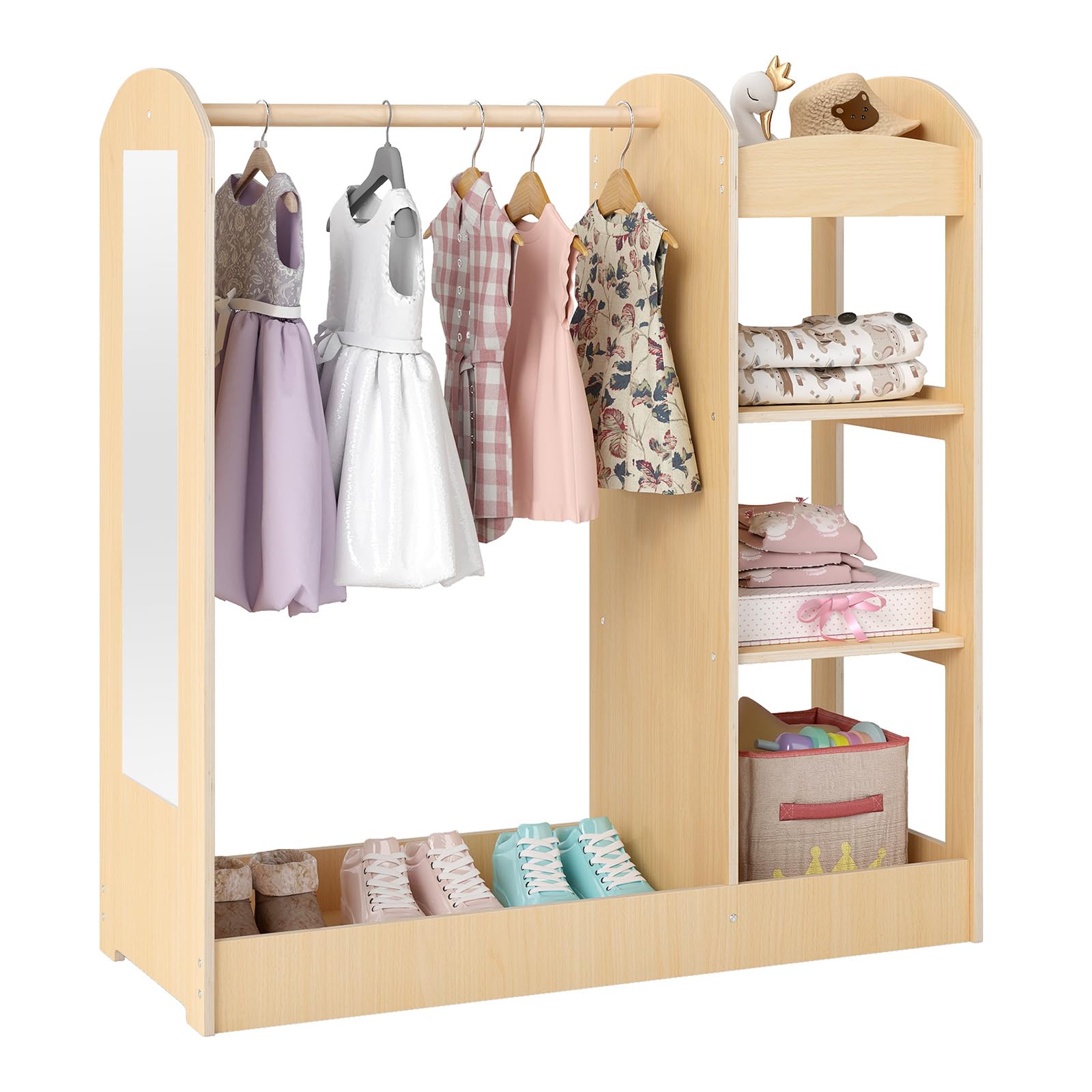 - Multifunctional Kids Wardrobe: Our open dress-up storage is designed with a sturdy hanging rod and 4 storage layers, which create spacious storage space. Meanwhile, there’s a full-length acrylic mirror on one side which will not break accidentally and is safe for kids to admire their daily outfit.