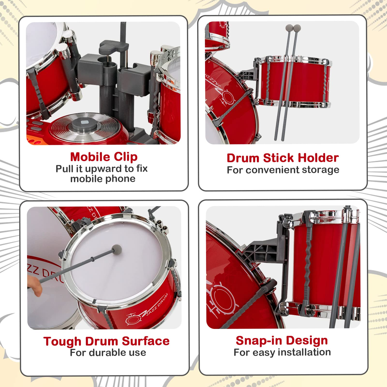 - Entertainment & Educational Toy: This jazz drum and keyboard set helps to improve children's fine motor skills, hand-eye coordination, auditory development as well as musical talent.