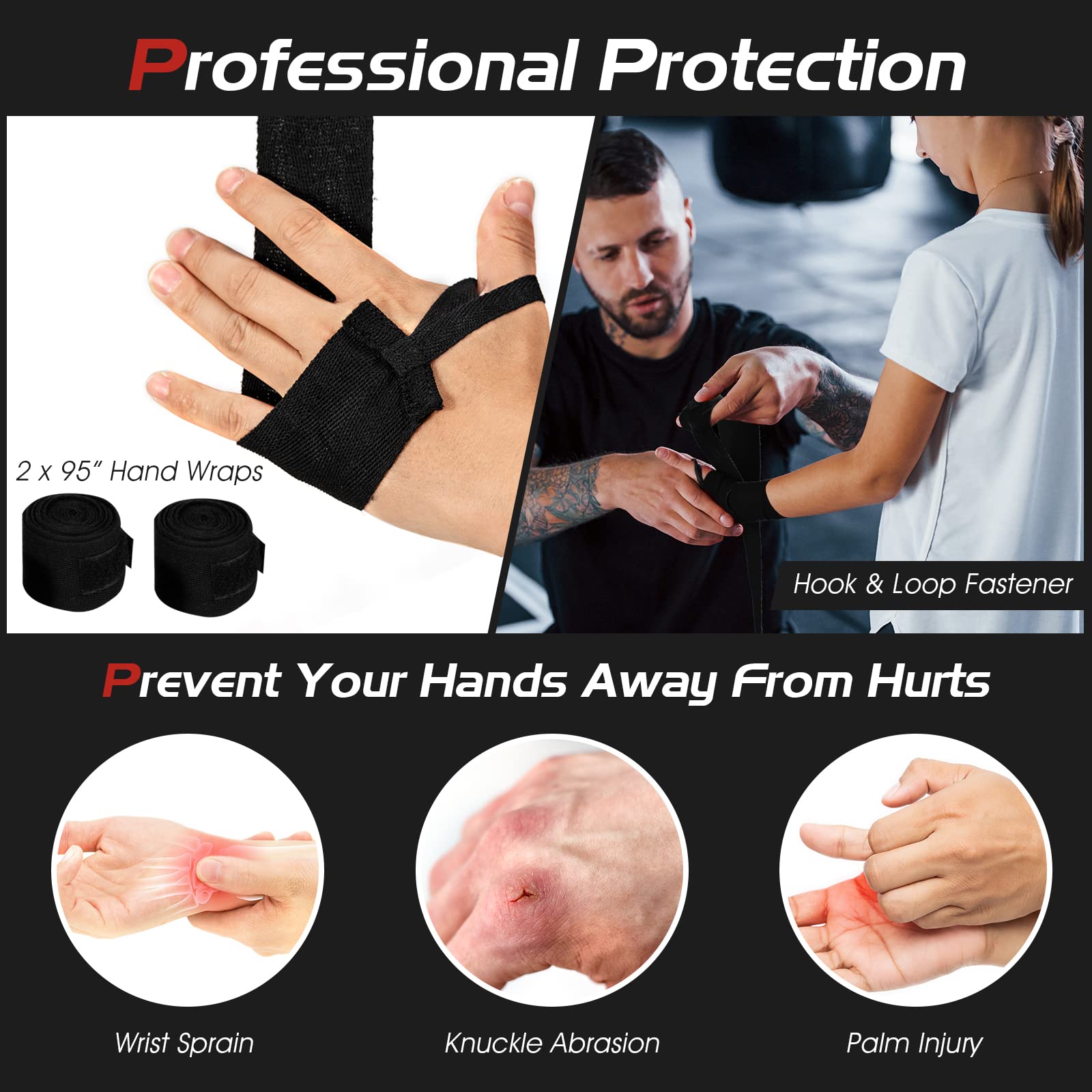 Let your little one dig out the potential through hitting on our kids' punching bag! Certificated by ASTM, the punching bag set is not only of high durability, but also harmless to kids' health. And the multi-tier surface with high-density EPE foam ensures immediate rebound and suitable resistance, providing your kid with awesome punching experience. The four high-grade straps with D-type snap hook make the boxing bag firmly connected to the hanging place. And the whole punching bag is well stitched, so you don't have to worry about leakage or rip. More importantly, the hand wraps and punching gloves give the best protection to the hands of your little one. This punching bag will be a fabulous partner for kids to train in Karate, Taekwondo, Muay Thai and so on.?