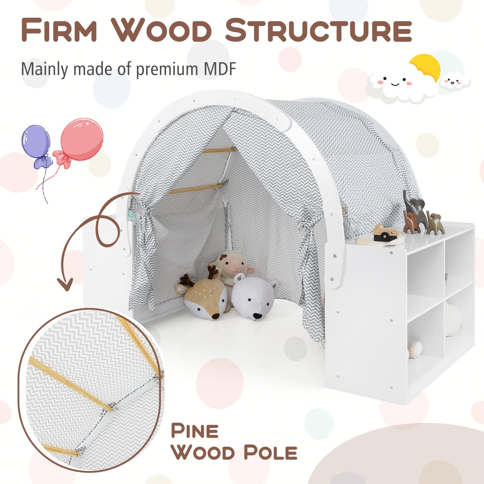 - [ Firm Wood Structure ]: Mainly made of premium MDF, this playhouse with reinforced connection features pine wood poles for higher stability. No wobbling or tipping, just a solid foundation for hours of laughter and games. Moreover, the play tent complies with ASTM and CPSIA for more reliability.