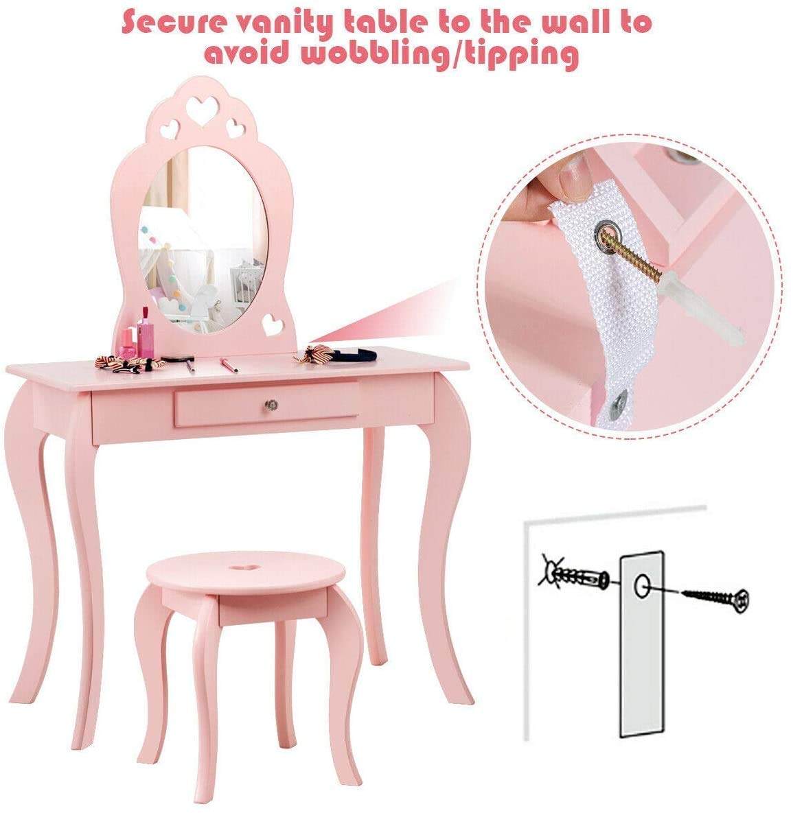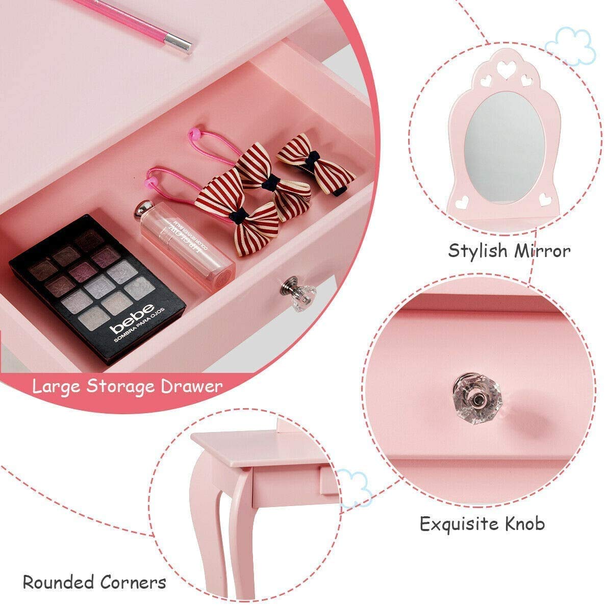 Costzon Kids Vanity Table 2 in 1 Detachable Design with Dressing Table and Writing Desk