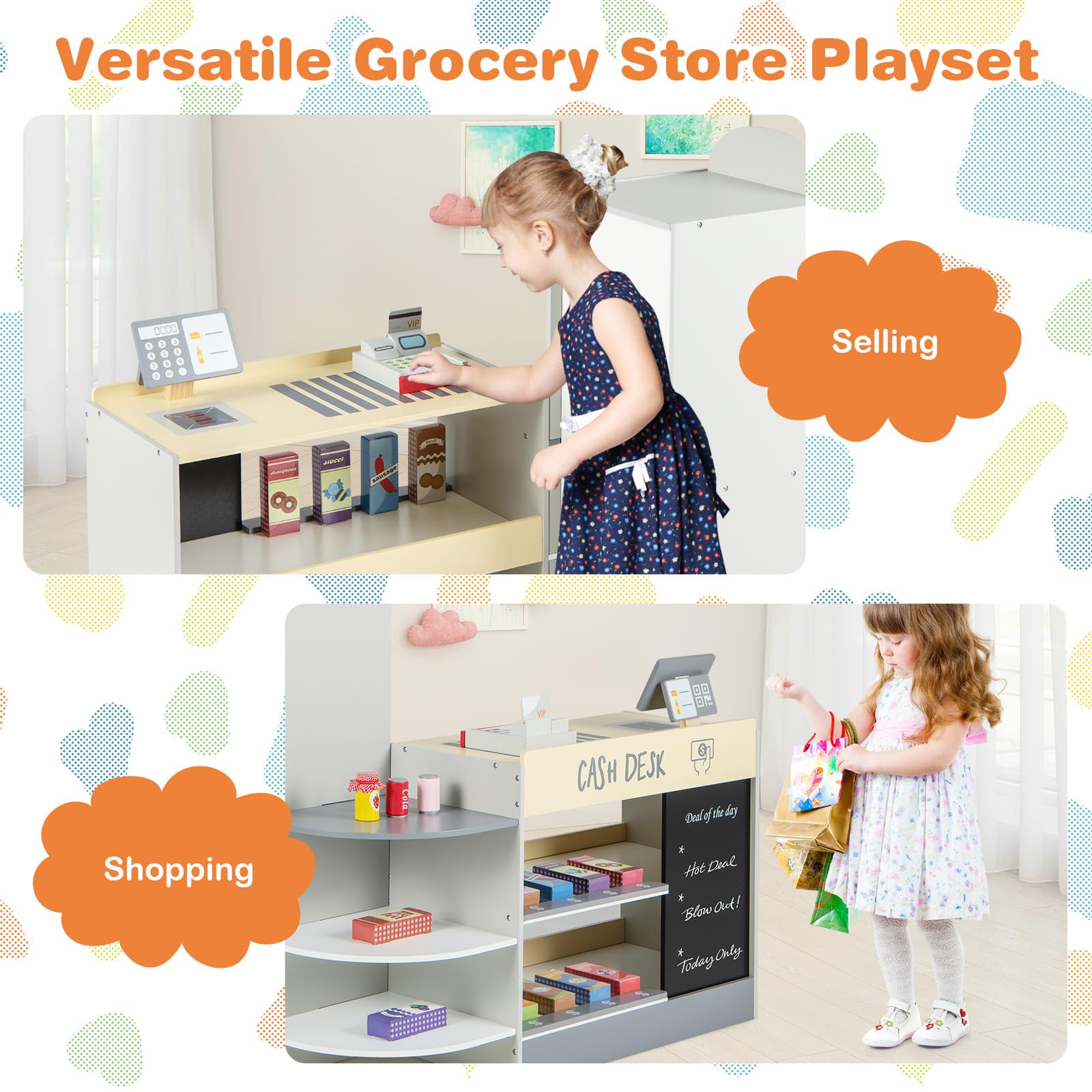 - ?【Perfect Gift for Kids】This kids-sized supermarket play set is suitable for 3-8 years old kids. It will be an ideal gift for boys and girls. Stocking shelves, using the register, and playing with friends are all great ways to help kids build self-confidence, stimulate imagination and cultivate communication skills.