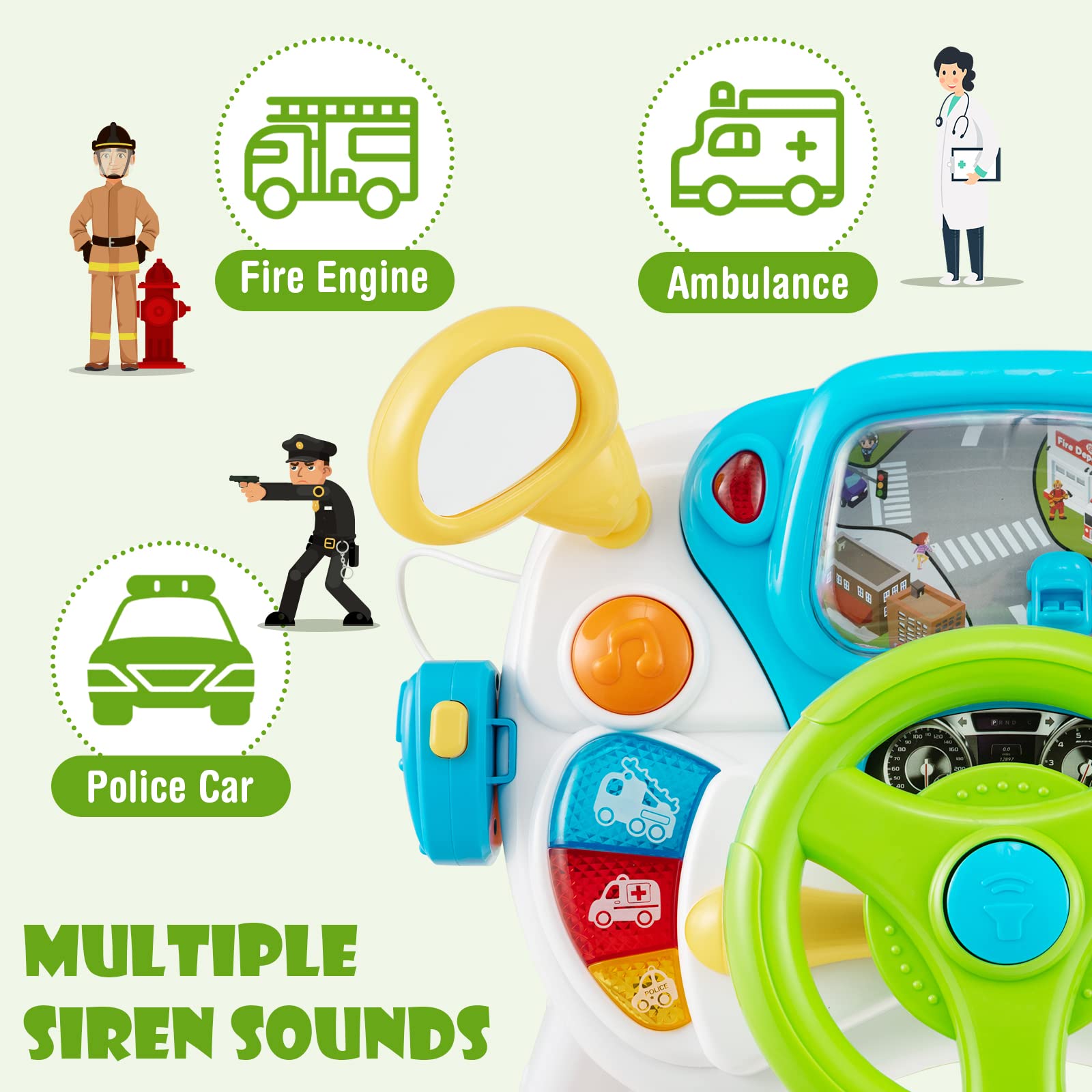 - Fantastic Role-play Fun: Equipped with 3 kinds of siren sounds, the simulated driving educational toy can be pretended as an ambulance, a police car, and a fire truck to realize a kid’s dream of being a superhero. Besides, the wired speaker adds endless fun to role-play games.
