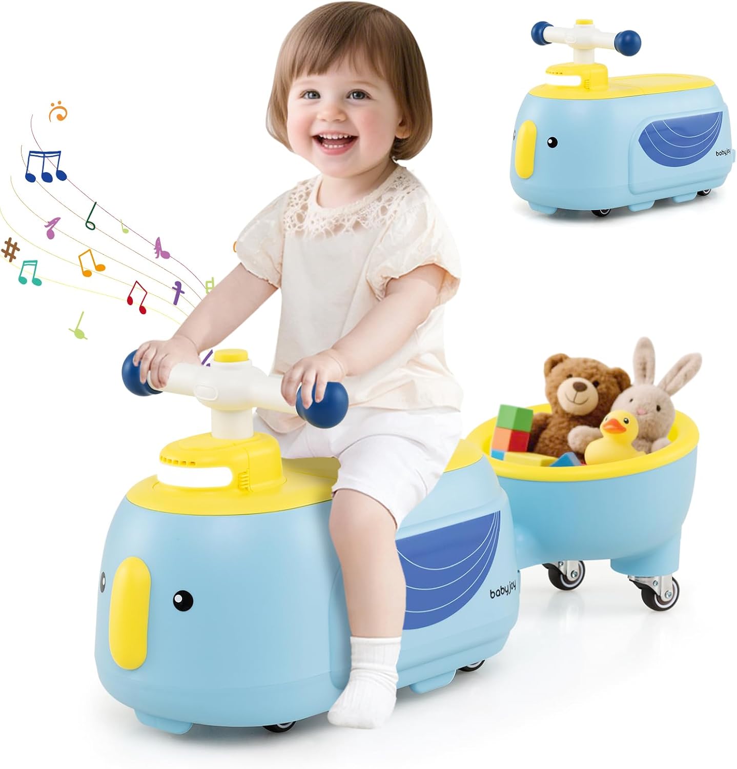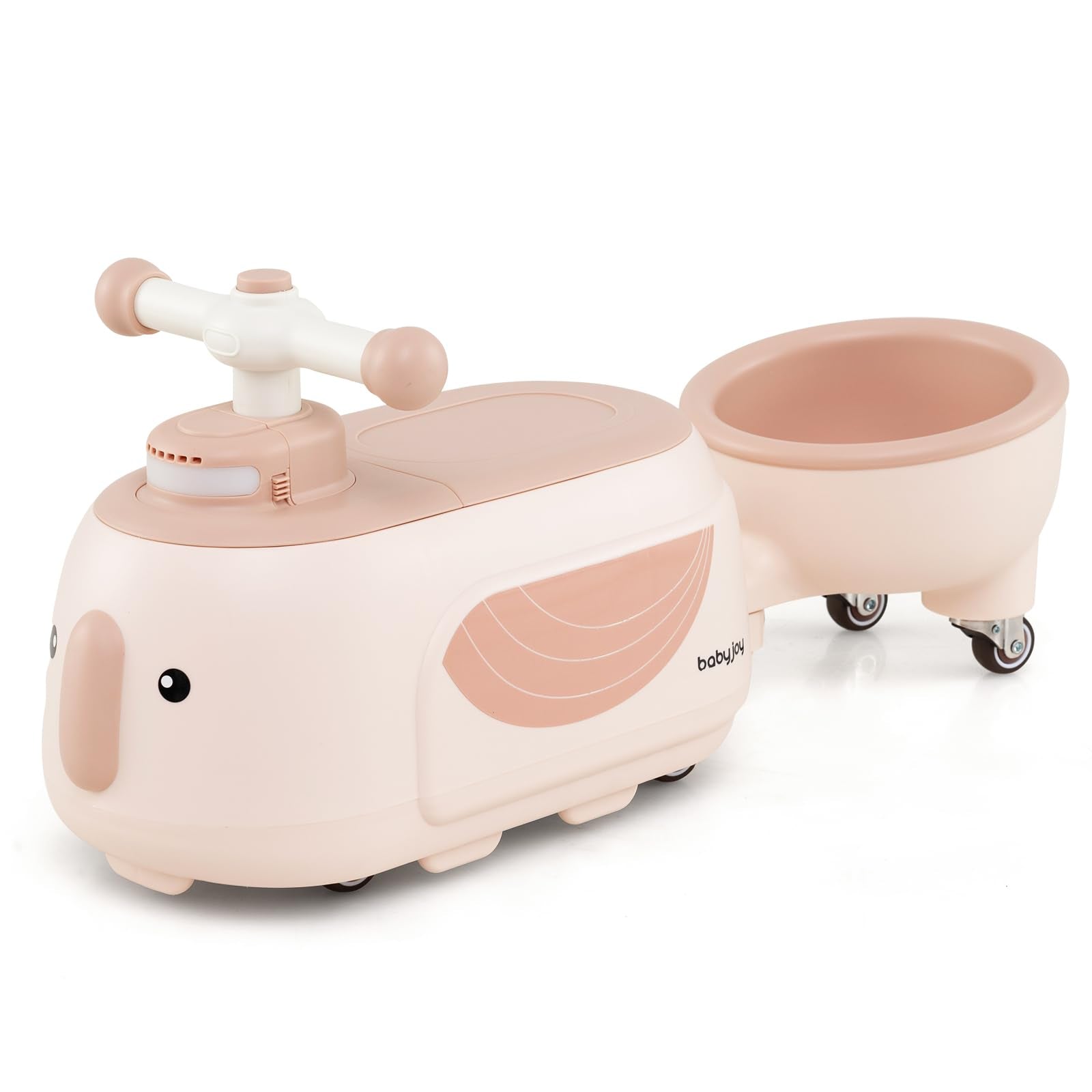 Designed to enhance both fun and sensory development, this ride on toy car comes with light and songs that promise an enjoyable experience. Sitting just 1.2” off the ground, the foot-to-floor sliding car features 6 anti-tipping stoppers for enhanced safety. The detachable trailer adds extra excitement and provides ample storage space alongside an under-seat compartment. With rounded handlebars and a generous seat, toddlers can enjoy a safe grip and cozy ride. Additionally, the ride on car and trailer glide smoothly on various surfaces, supported by universal wheels that allow for delightful indoor and outdoor play. Adorned with a charming penguin design, this toddler ride on car makes a memorable gift for special occasions.