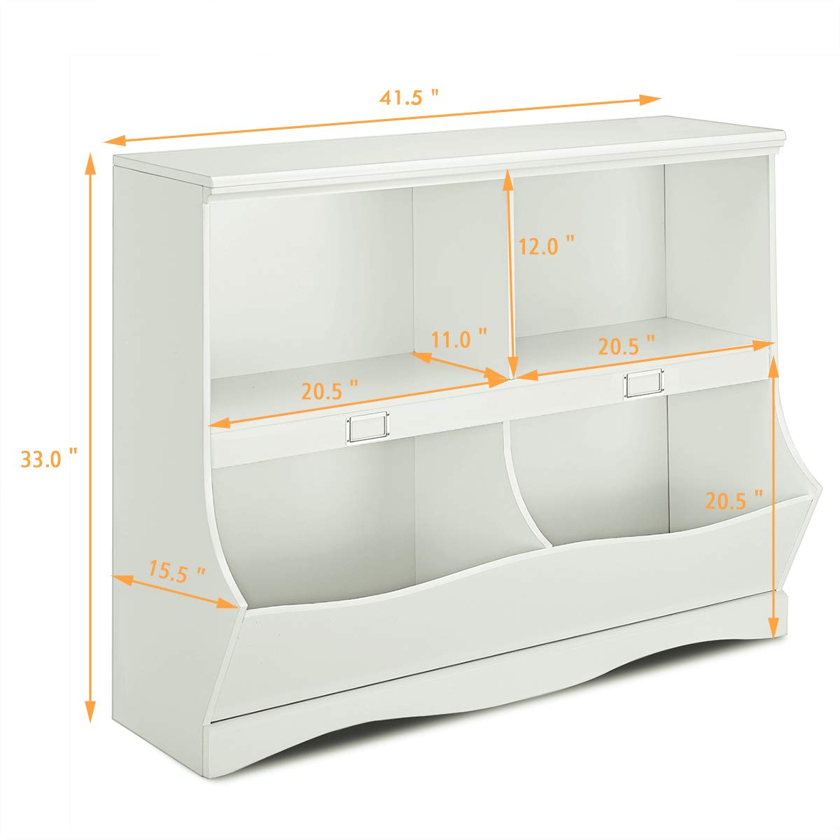 Little ones could put all of their favorite toys or books in this shelf. It's a good tool to teach children to arrange and classify their own things. Children could easily reach whichever catches their eye with 2 tiers of open concept shelving. Constructed of durable natural finish birch with rounded edges for added safety. This item could storage and classify different things, whatever books or toys.