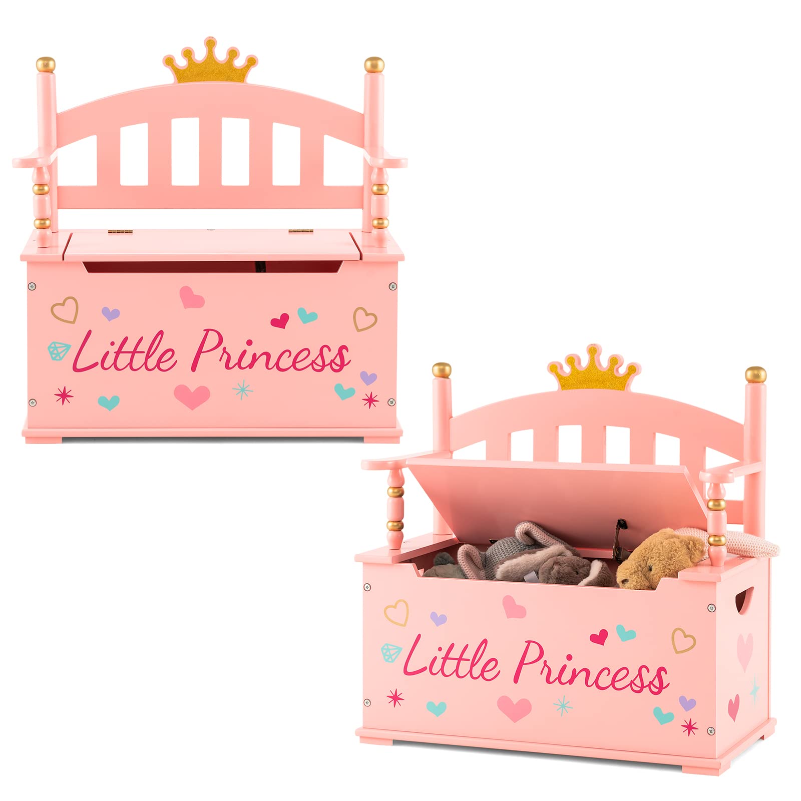 Costzon Wooden Toy Box, 2 in 1 Toy Chest Storage Bench