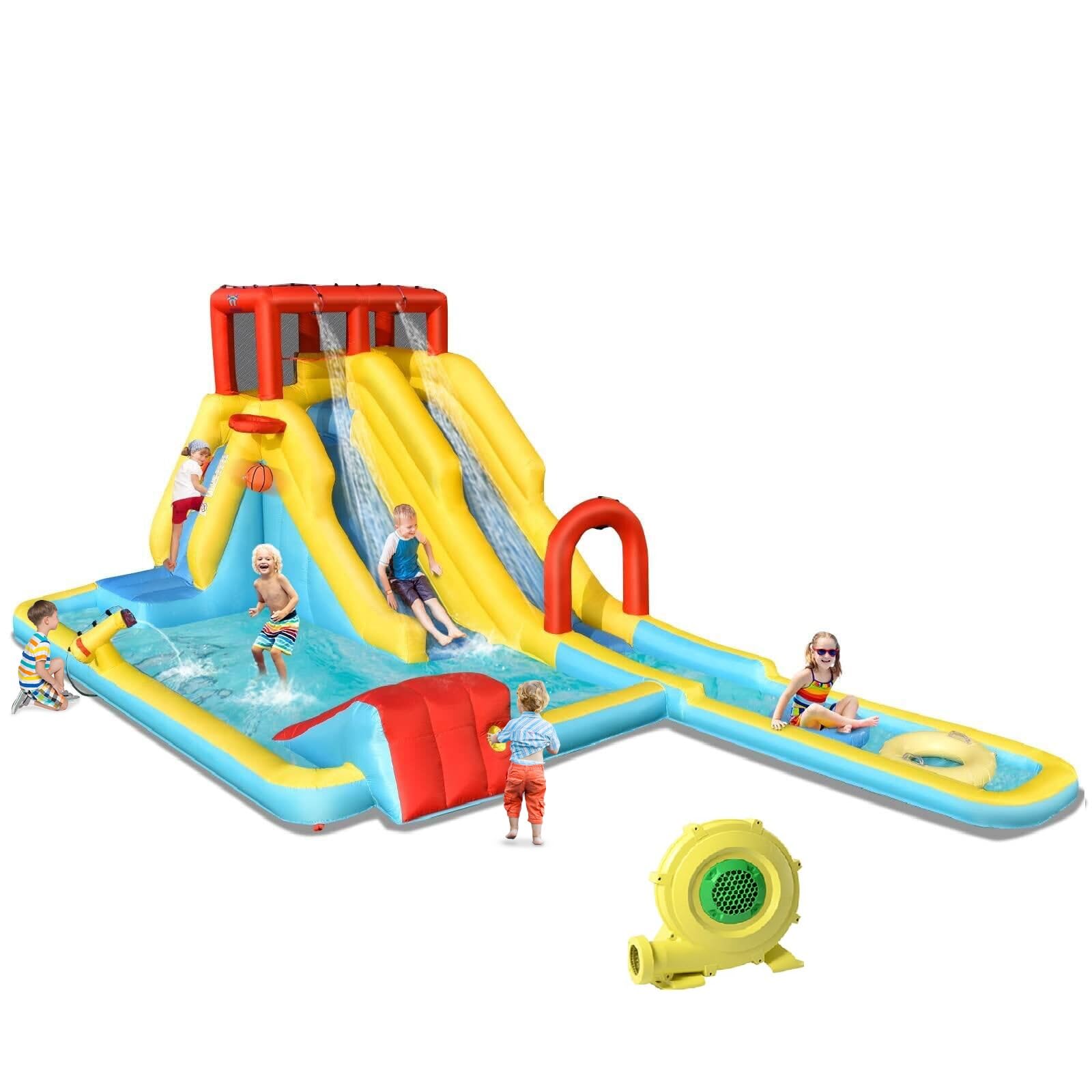 Costzon Inflatable Water Slide 7 in 1 Double Long Slide Giant Water Park w/Blower