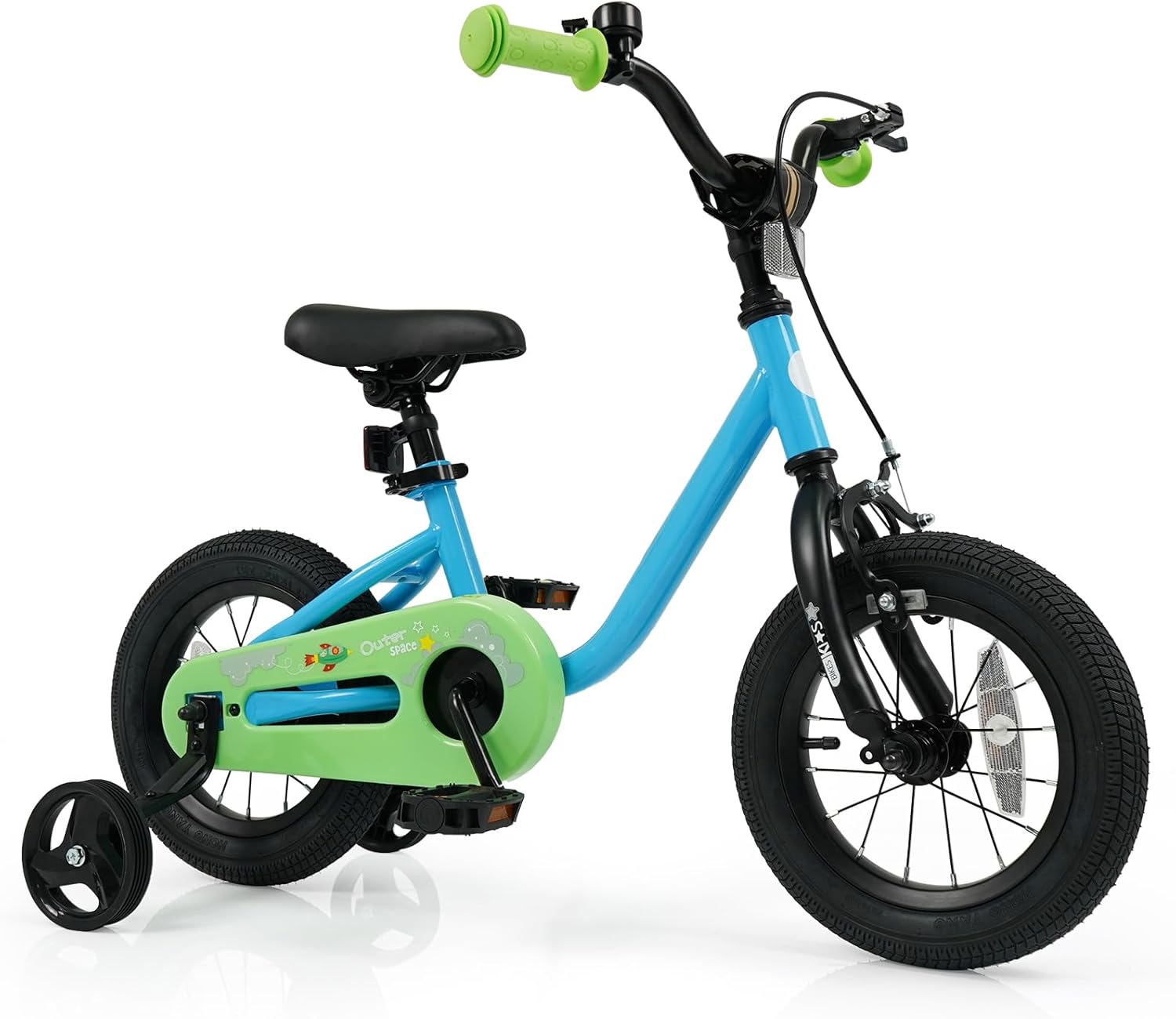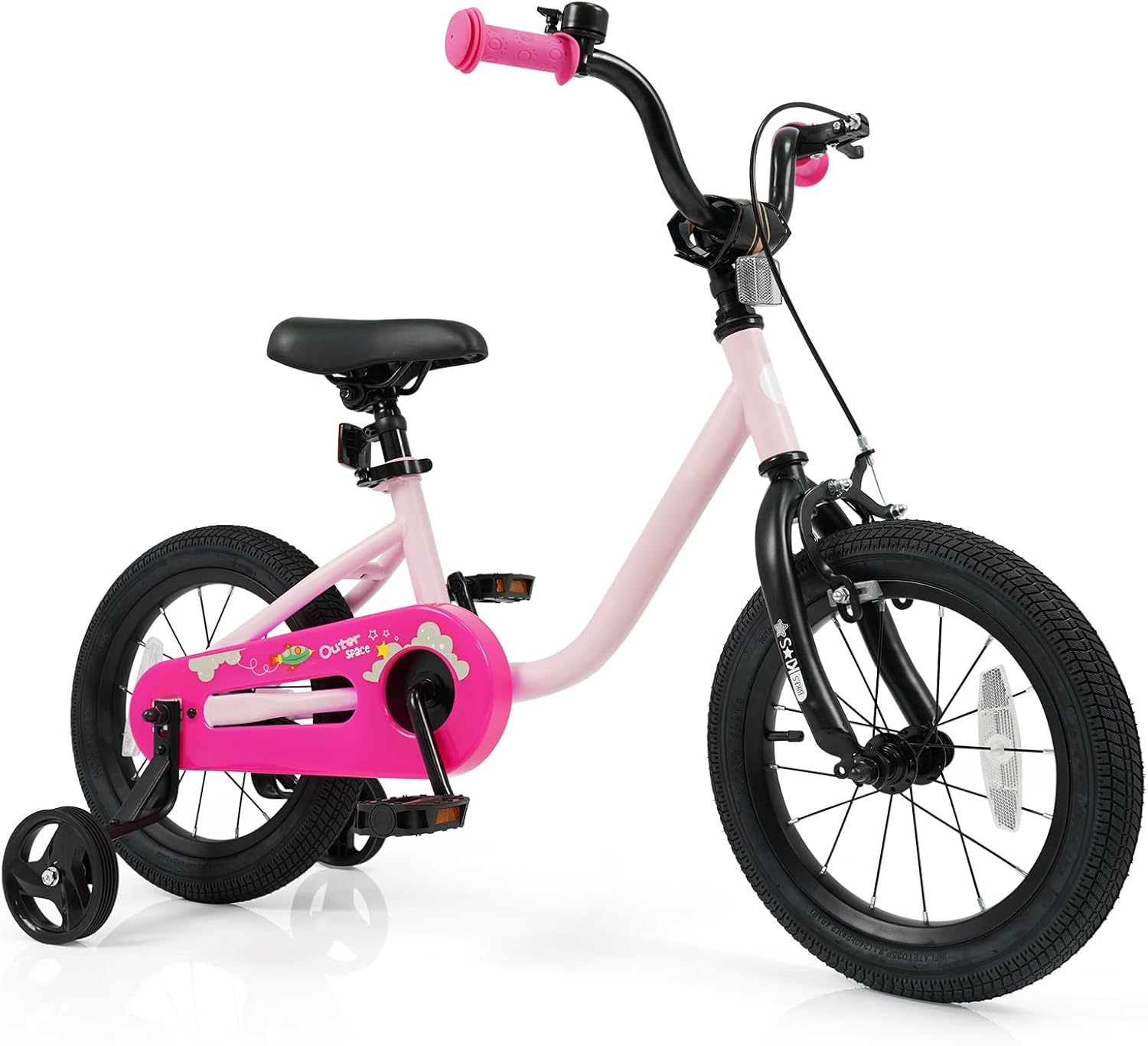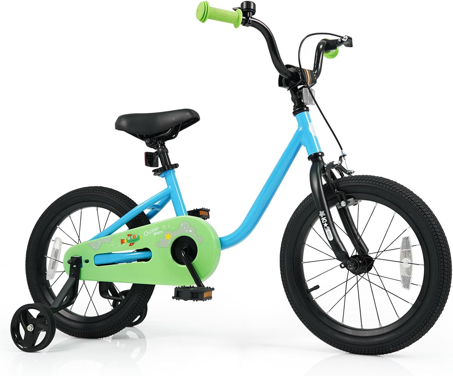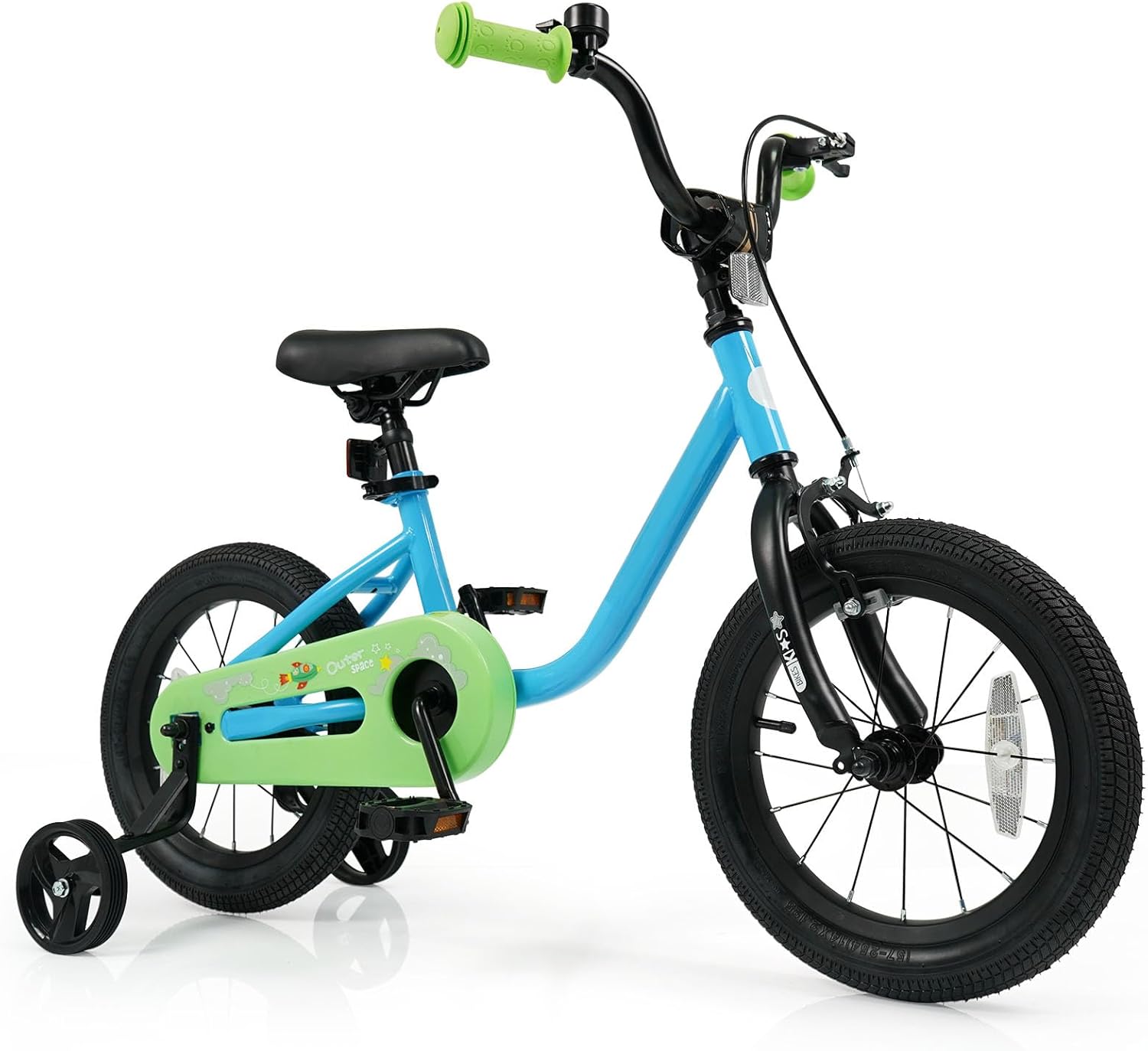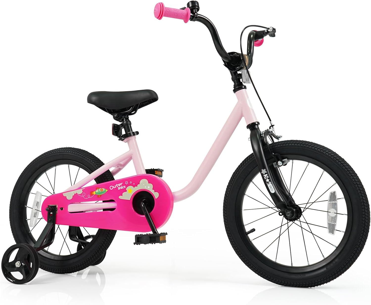 The pre-assembled design makes it easy to assemble. Featuring an adjustable handlebar and seat, it is a perfect choice for 3-7 years old young riders to learn to ride. With 2 large tires, your little one can enjoy safe and smooth riding on flat surfaces. The kids bike is also designed with 2 removable training wheels to help your child stay balanced and learn to pedal independently. Additionally, children can use a hand brake or rear coaster brake to safely brake. The front and back reflectors will help to make your child visible in low-light conditions.