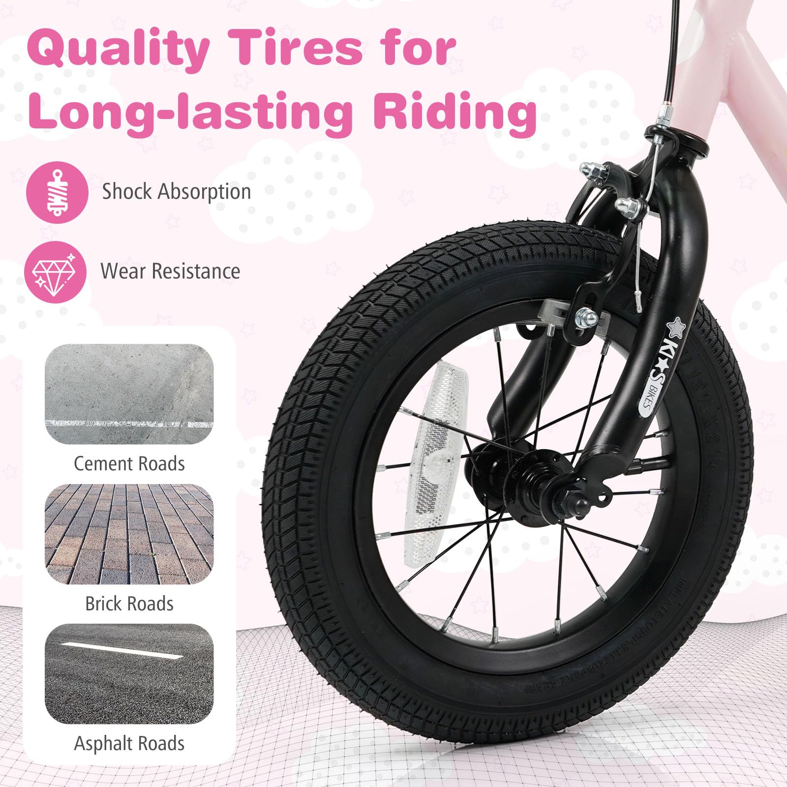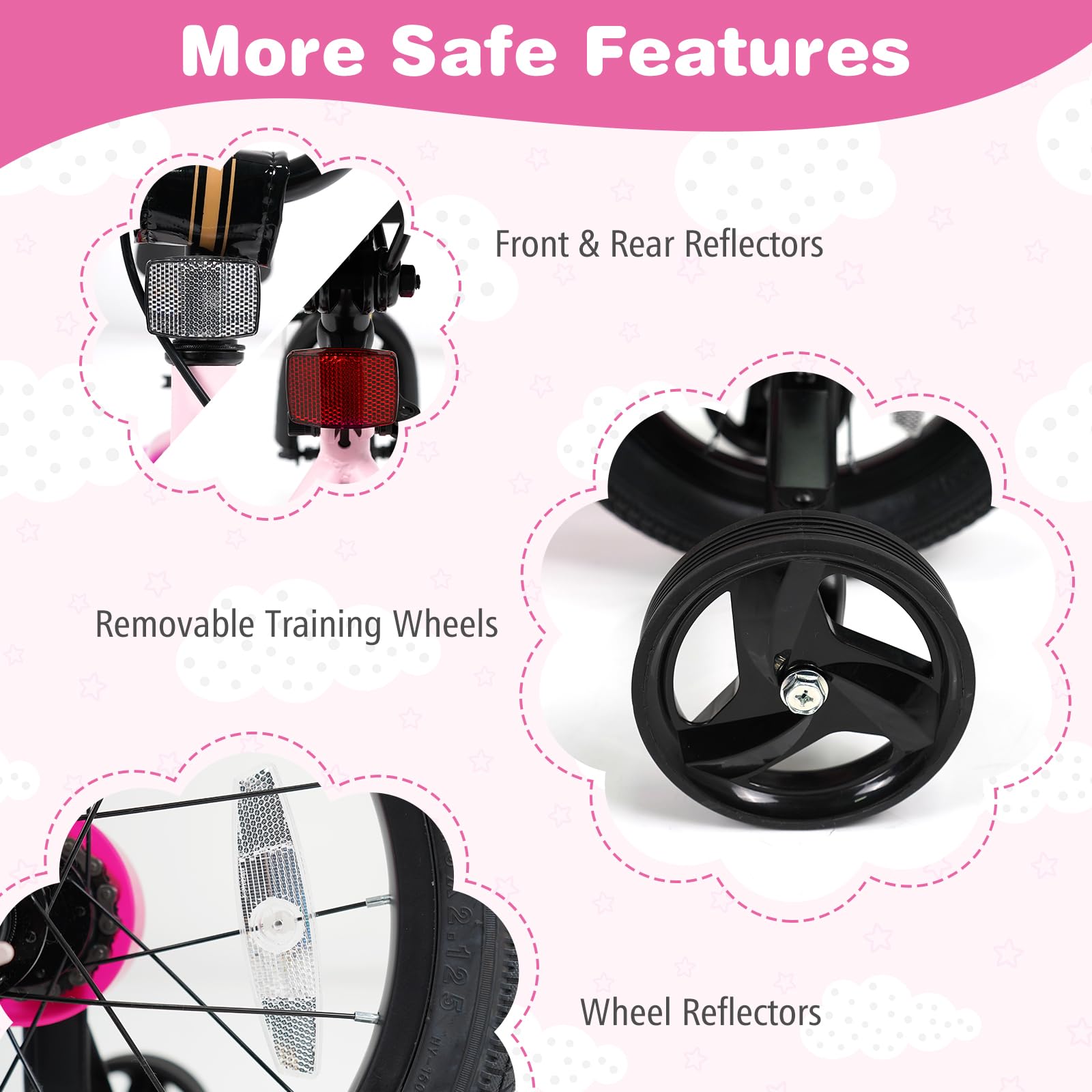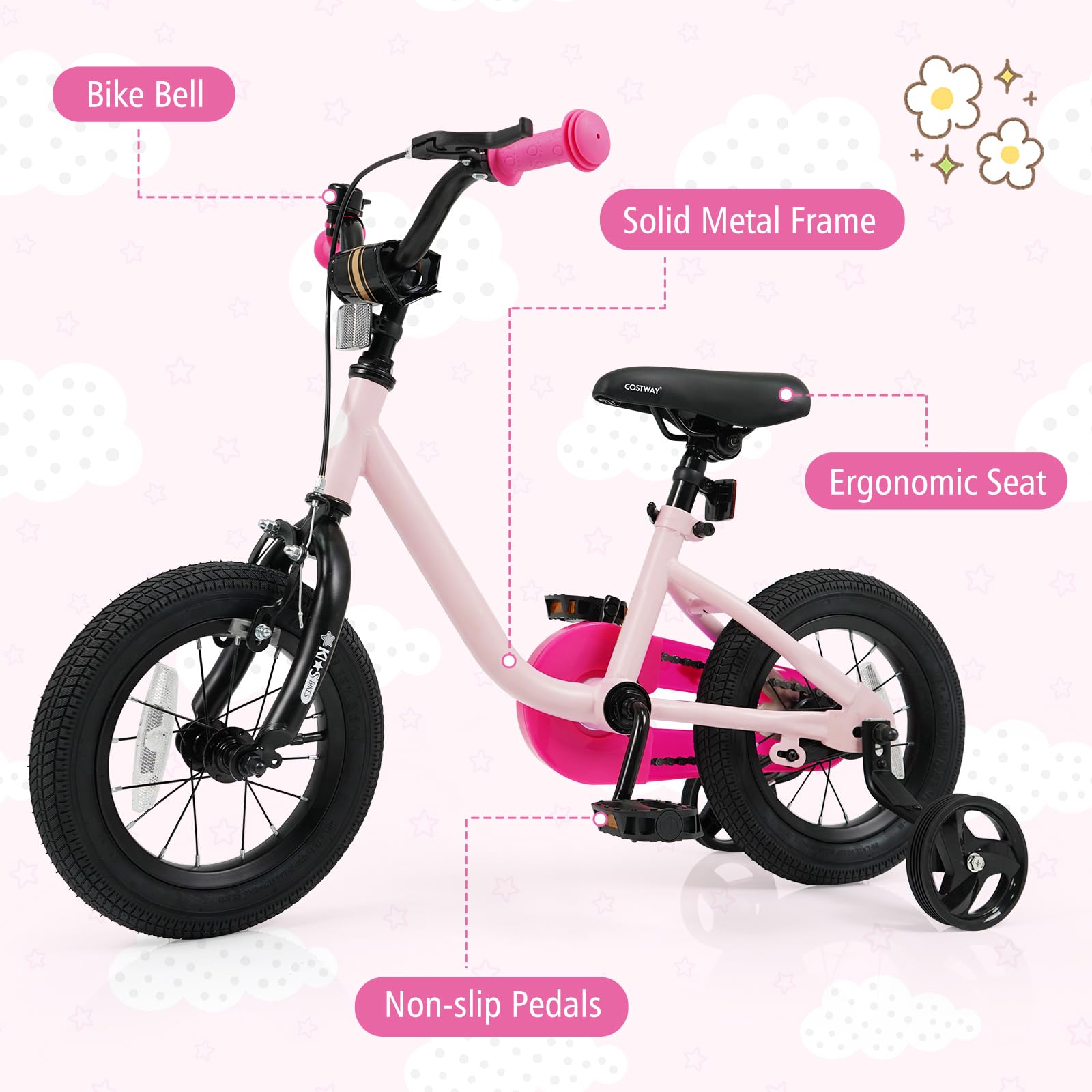 2 detachable training wheels allow kids to learn to ride and keep balance