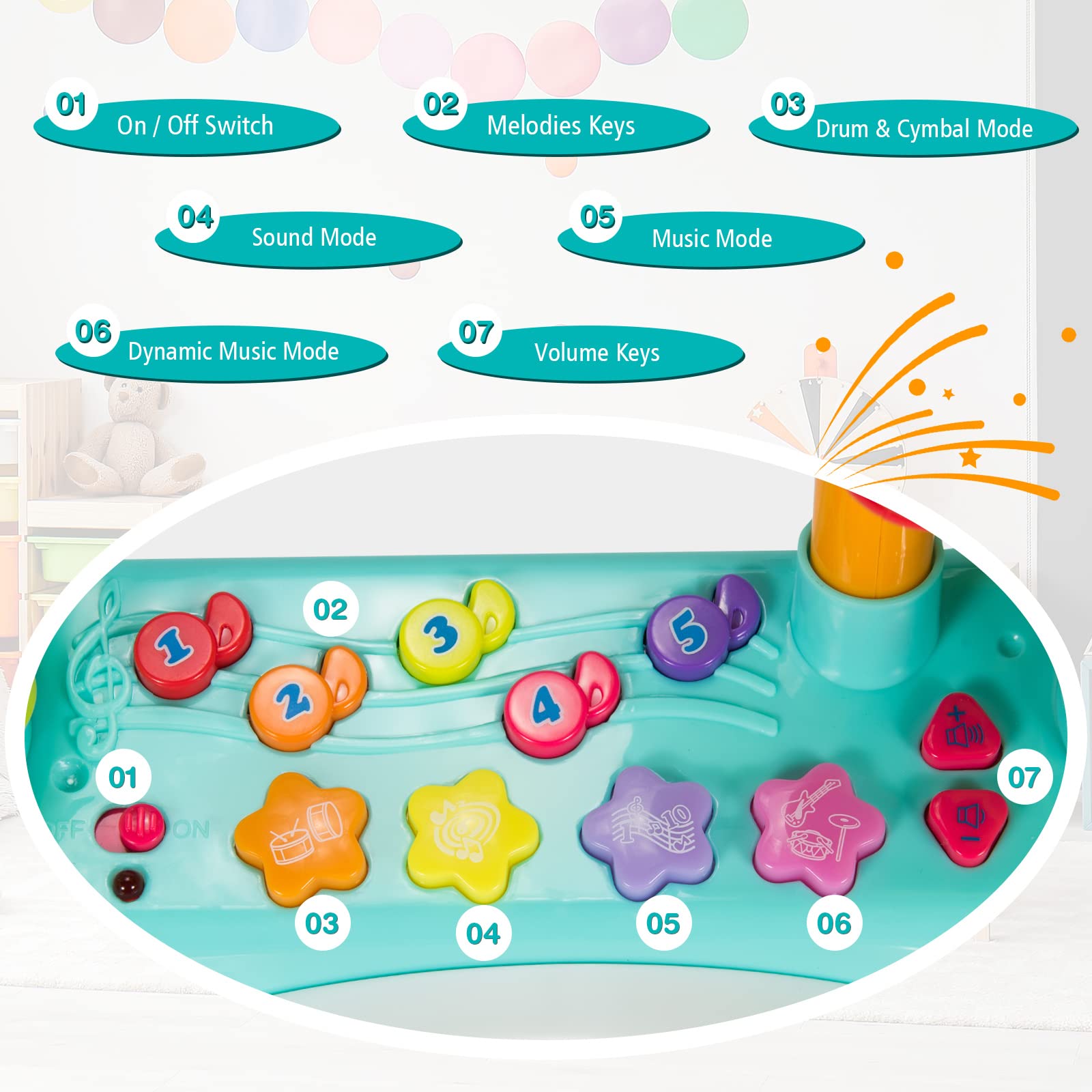 Perfect Gift for Your Kids: Our musical drum set is the perfect gift for kids over 3. Its cute patterns with rich colors can develop kid's color recognition. Different sounds and melodies improve kid's musical creativity. In addition, the jazz drum can also help to promote children's hand-eye coordination.