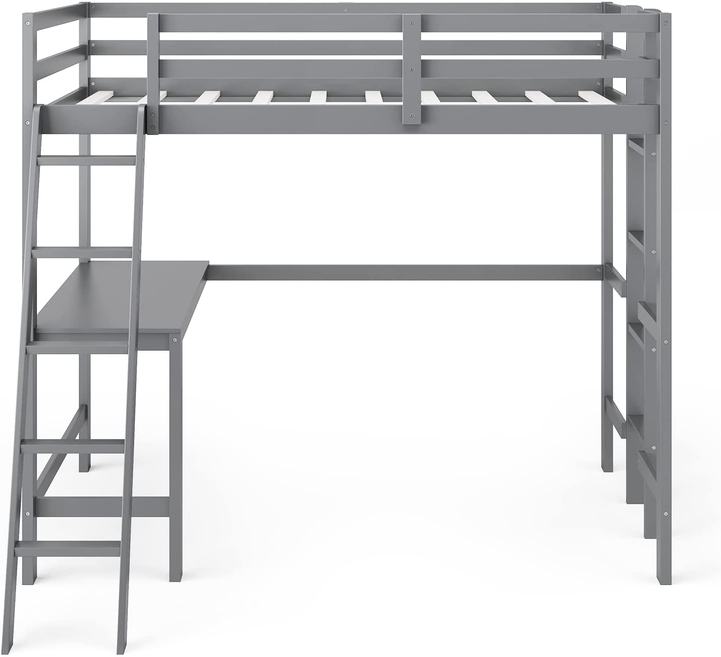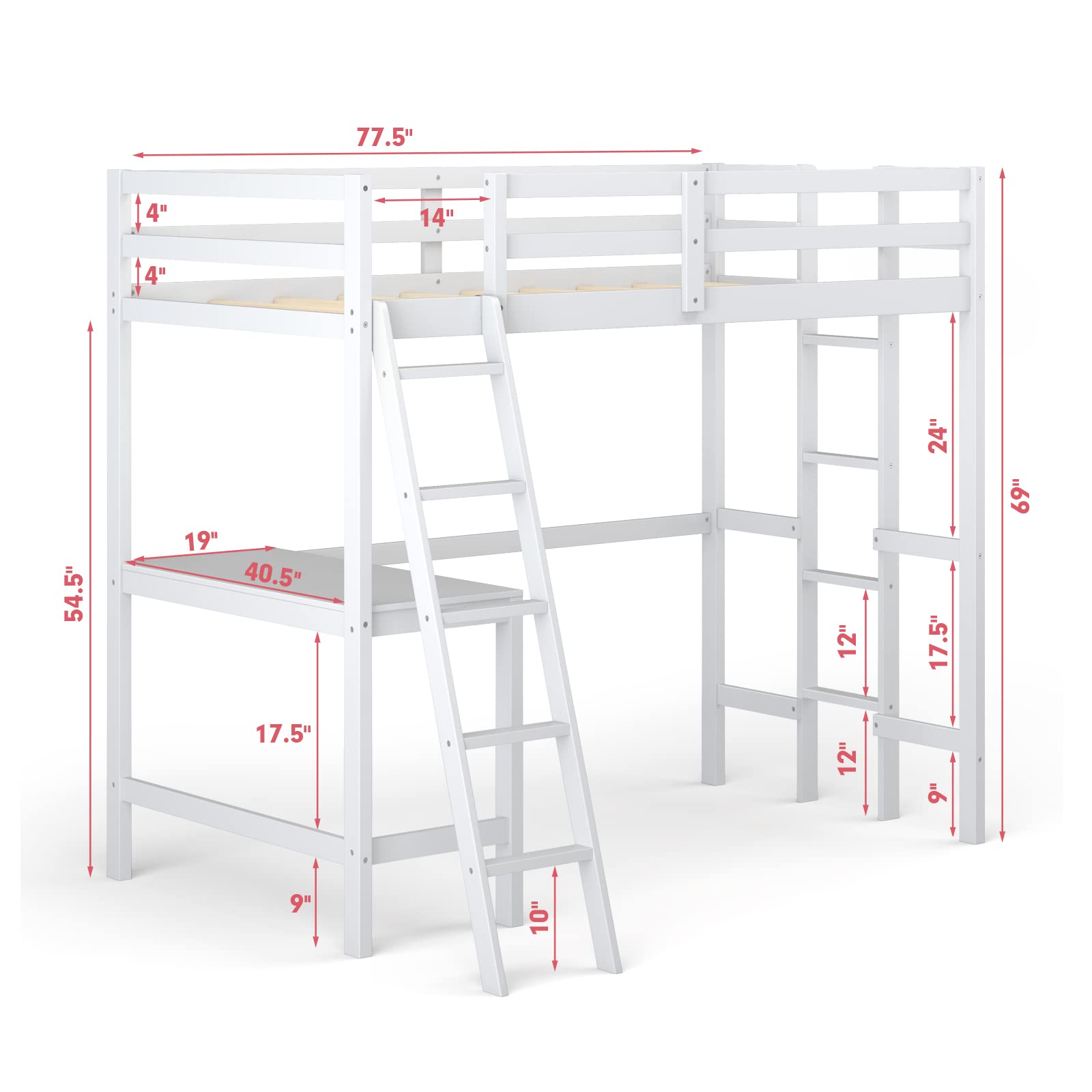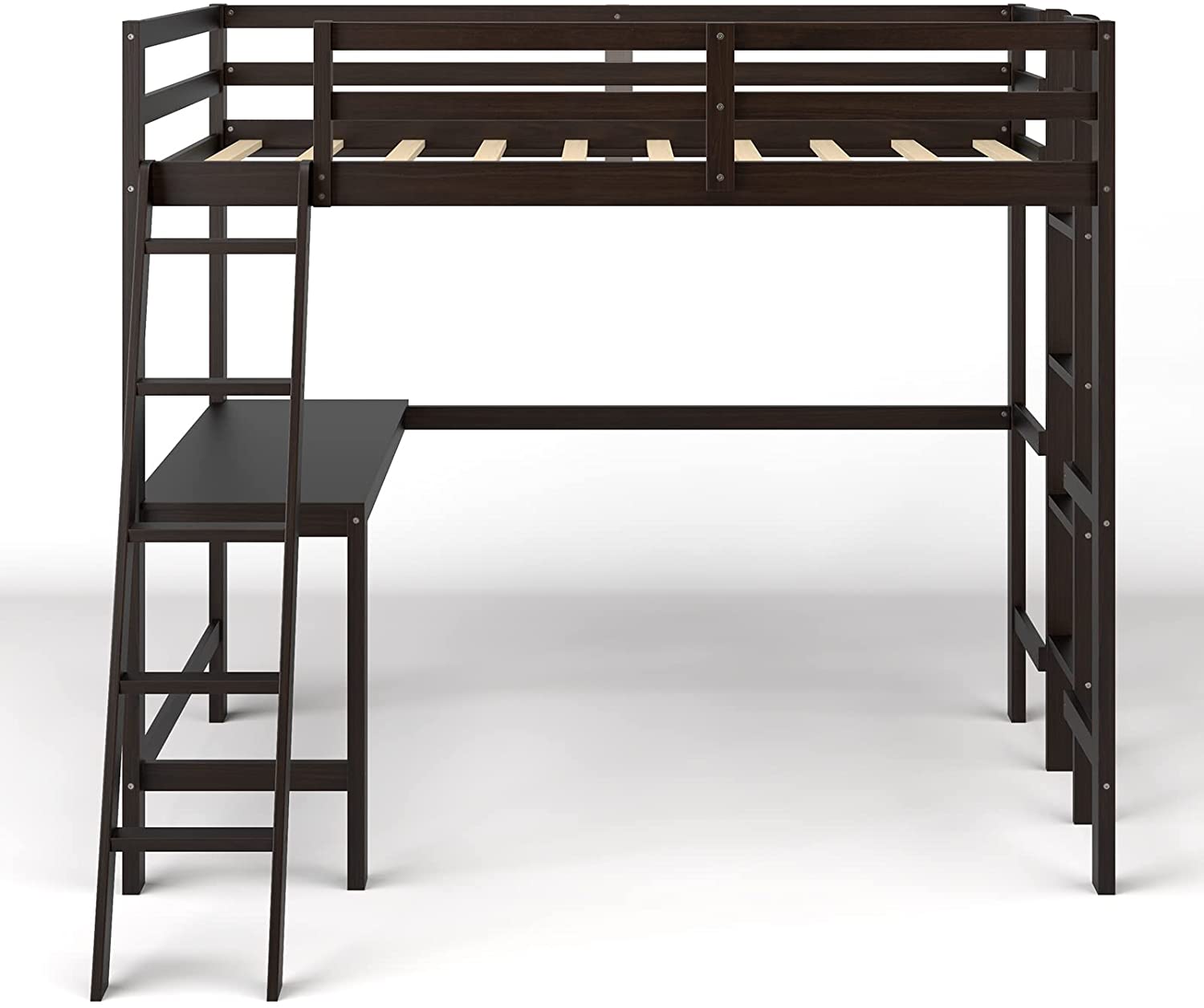 Constructed by superior pine board and noiseless plywood slats, the bed frame is strong and durable enough for long time use. The ample floor space under the bed allows you to use it for work, leisure, and storage. The built-in table helps you organize a lot of messy essentials and creates a large study area for you. What spare room, this practical loft bed frame is a nice addition.